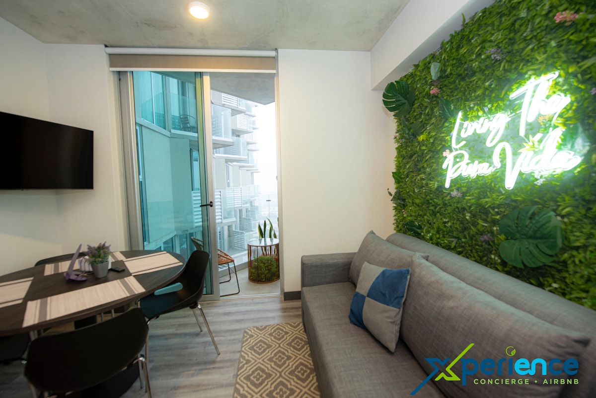 न्यूक्लियो सबाना येथे नवीन लक्झरी अपार्टमेंट. A/C, 2 स्मार्ट टीव्हींसह सर्व नवीन उपकरणांसह एक मिनिमलिस्ट स्टाईल आहे. TVservice सह हाय स्पीड इंटरनेट. लाँड्री रूममध्ये वॉशर/ड्रायरचा समावेश आहे, 1 मध्ये 2. यात झाडांच्या वरच्या बाजूस आणि बाल्कनीतील आकाशाचे अप्रतिम दृश्य आहे. त्याच्या बाजूला एक नदी आहे जेणेकरून तुम्ही नेहमी नदीच्या आवाजाचा आनंद घेऊ शकाल. कॉम्प्लेक्स: गॅस्ट्रोनॉमिक मार्केट(NucleoGastro) सह 30 पेक्षा जास्त सुविधा. जुआन सँटामारिया आंतरराष्ट्रीय विमानतळ (SJO) पासून 10 मिनिटांच्या अंतरावर आहे.