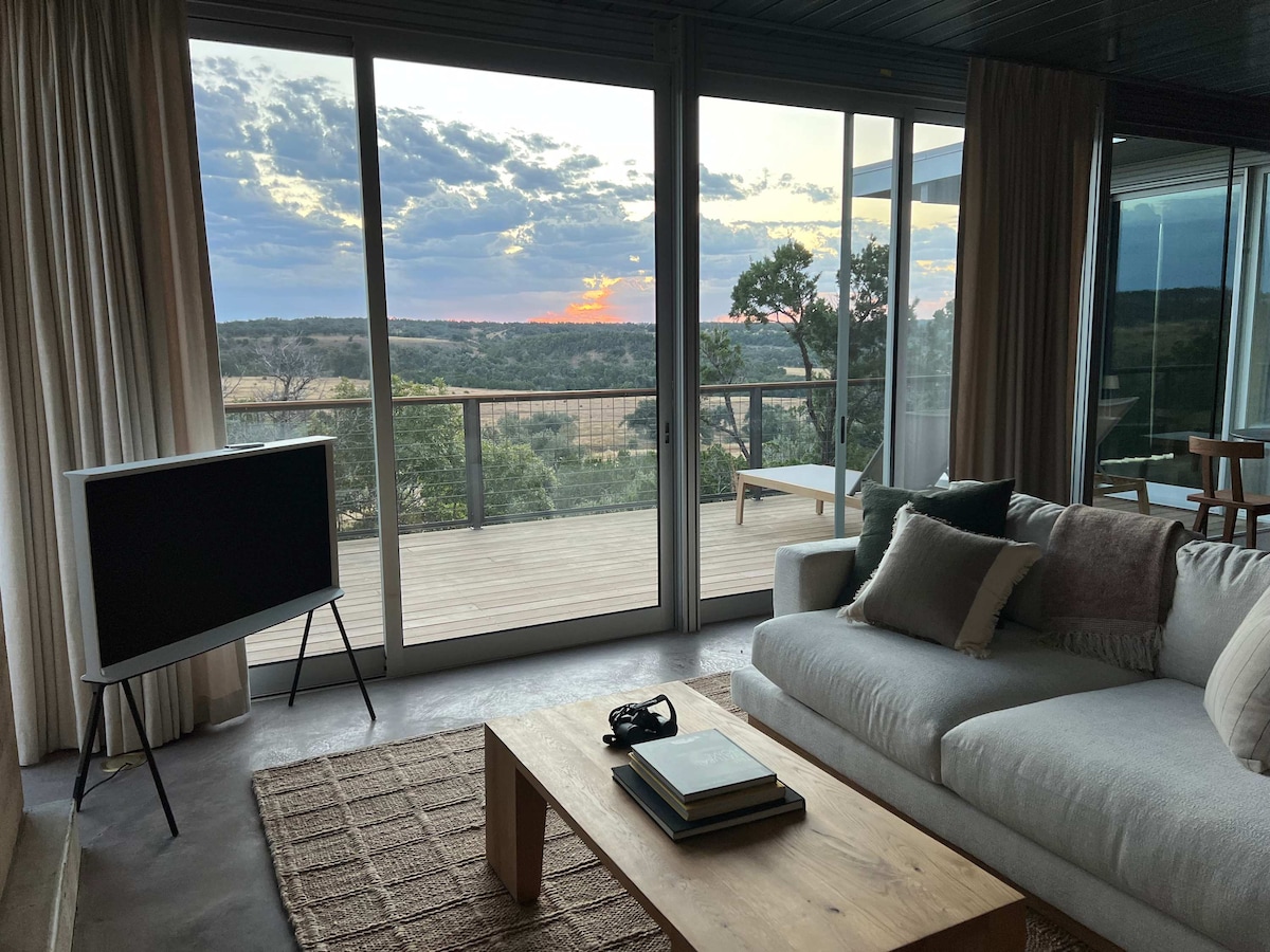 मोठ्या काचेच्या खिडक्यांमधून चित्तवेधक दृश्यांसह टेक्सास हिल कंट्रीमधील या अनोख्या आफ्रेम केबिनमध्ये आरामदायी सुट्टीचा आनंद घ्या. फ्रेडरिक्सबर्ग, टेक्सासमधील मेन स्ट्रीटपासून फक्त 10 मैलांवर - तुमच्यासाठी वाइनरी, ब्रुअरीज आणि एन्चॅन्टेड रॉकसह भरपूर शॉपिंग, डायनिंग आणि आकर्षणे आहेत. किंवा, तुम्ही निसर्गाच्या शांत आवाजाचा आनंद घेण्यासाठी कव्हर केलेल्या पोर्चवर किंवा काउबॉय पूलमध्ये आराम करू शकता.