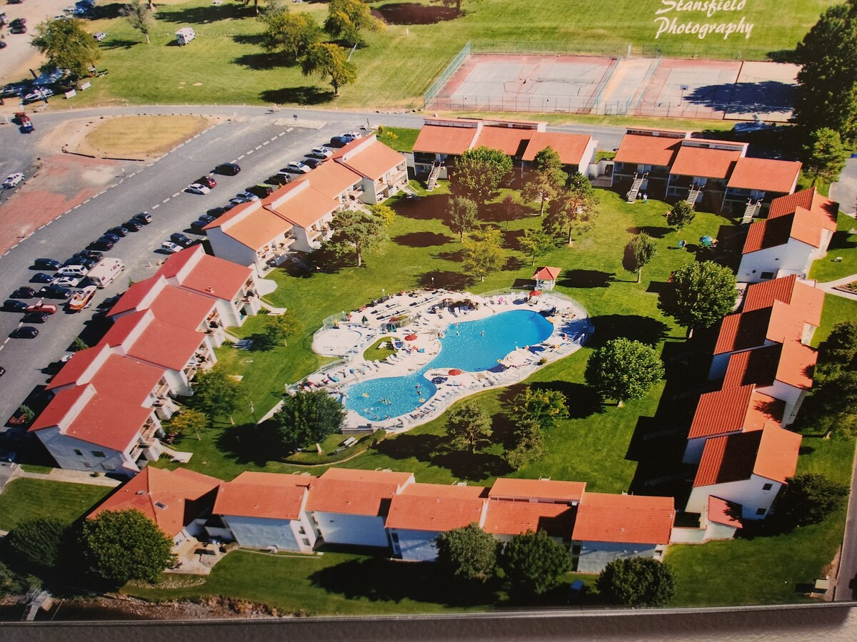 ग्राउंड - फ्लोअर काँडोमिनियम वाई/ स्लीपर सोफा. मॅनीक्युर्ड ग्राउंड्स, मोठा पूल, हॉट टब आणि मुलांसाठी स्प्लॅश पूल असलेल्या गेटेड क्रिसेंट बार आयलँड कम्युनिटीमध्ये स्थित. क्रिसेंट बार वॉकिंग ट्रेल्स, दोन बोट लाँच, पिकनिक एरिया, लाईटेड स्पोर्ट्स कोर्ट्स, खेळाचे मैदान, बीच, स्विमिंग एरियाचा आनंद घ्या. निवारा असलेल्या बॅक चॅनेलमध्ये कोलंबिया नदी, वॉटर स्कीइंग, मासेमारी आणि पॅडल बोर्डिंगचा आनंद घ्या. गोल्फ, बोटिंग, बाइकिंग, डायनिंग आऊट, वाईन टूर्स, शॉपिंग, गॉर्ज ॲम्फिथिएटरच्या काही मिनिटांच्या संधी.