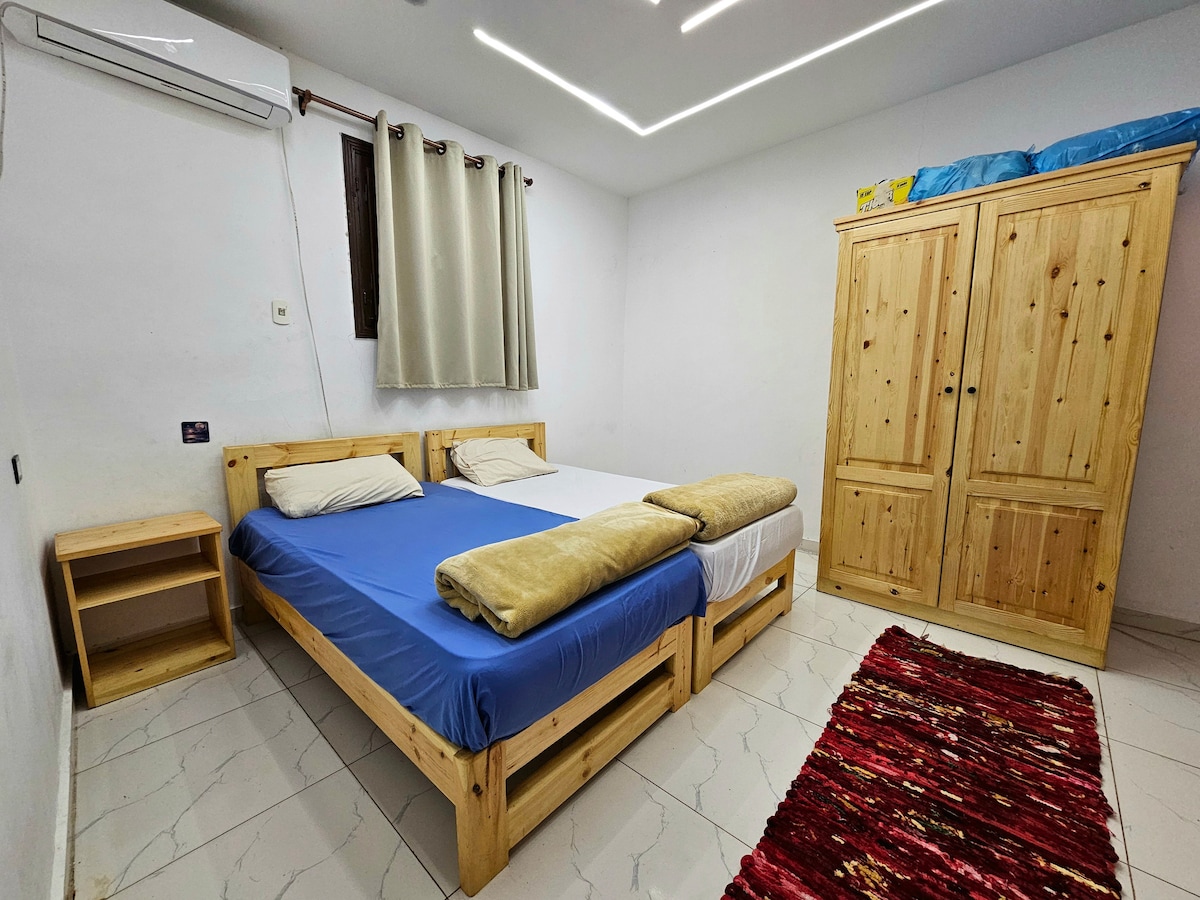 GANESHA BEACH APARTMENTS first line villa in the middle of Assalah shore. Villa contains of 4 separate apartments. This Apartment located at the first floor of our villa. Please take a note according to the Egyptian government law MIXED GENDERS ARE NOT ALLOWED to stay in one apartment unless they are family members and have documented proof. (although you can still book 2 separate apartments next to each other)