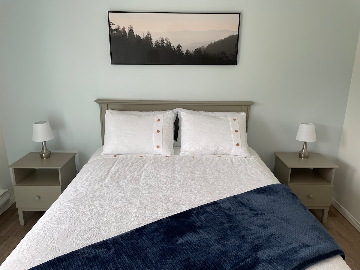 हा उज्ज्वल आणि प्रशस्त नव्याने तयार केलेला खाजगी सुईट न्यूफाउंडलँडच्या ग्रेट नॉर्दर्न द्वीपकल्पात कॉ हेडच्या निसर्गरम्य ग्रॉस मॉर्न नॅशनल पार्क कम्युनिटीमध्ये वसलेला आहे. या आदर्शपणे स्थित सुईटमध्ये किचन, बेडरूम, आरामदायक राहण्याची जागा, तीन तुकड्यांचे बाथ आहे आणि शॅलो बे बीच, ग्रॉस मॉर्न थिएटर आणि वेस्टर्न ब्रूक बोट टूर्सपासून काही मिनिटांच्या अंतरावर आहे. कृपया लक्षात घ्या की या इमारतीत 5 सुईट्स आहेत, ज्यात पोर्च आणि फायर पिटभोवती शेअर केलेले रॅप आहे.