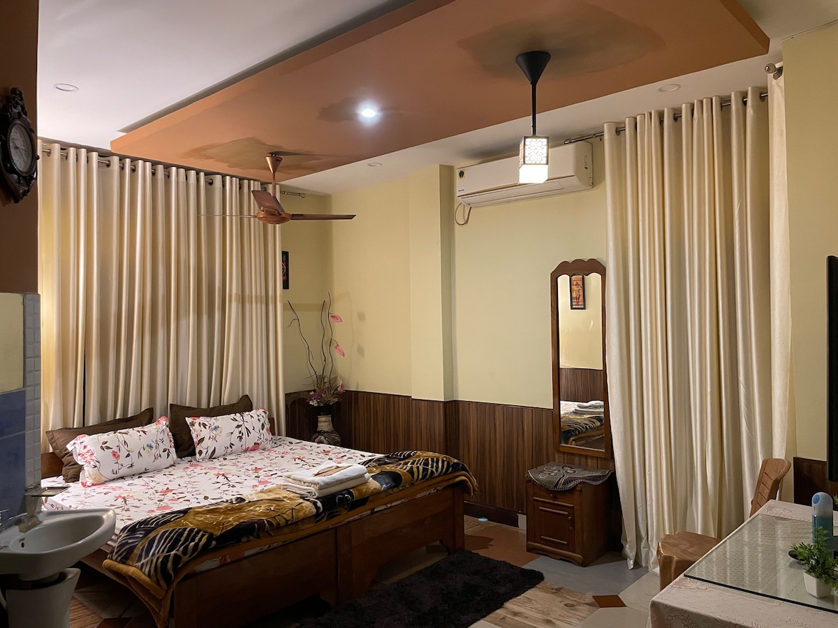 जागा प्रति रात्र A/c साठी अतिरिक्त 150 खासकरून तुम्ही एकटे येणे किंवा मित्र किंवा भागीदारासह येणे हे एक मिनी रिट्रीट आहे. 21 वर्षांखालील जोडप्यांना परवानगी नाही आसपासच्या परिसरासह खाजगी एंट्री (काहीही कोणाबरोबरही शेअर केलेले नाही) गुवाहाटी प्राणीसंग्रहालय, आरजीबी रोडपासून 2 मिनिटांच्या अंतरावर असलेल्या, आम्ही कॅम्पसमध्ये विनामूल्य पार्किंगसह निवासस्थान प्रदान करतो आणि विनामूल्य वायफाय. तुमच्या वास्तव्यादरम्यान सर्व आवश्यकतेसाठी रिलायन्स सेंट्रो, सिटी सेंटर आणि रेस्टॉरंट सारख्या मॉल्स आहेत.