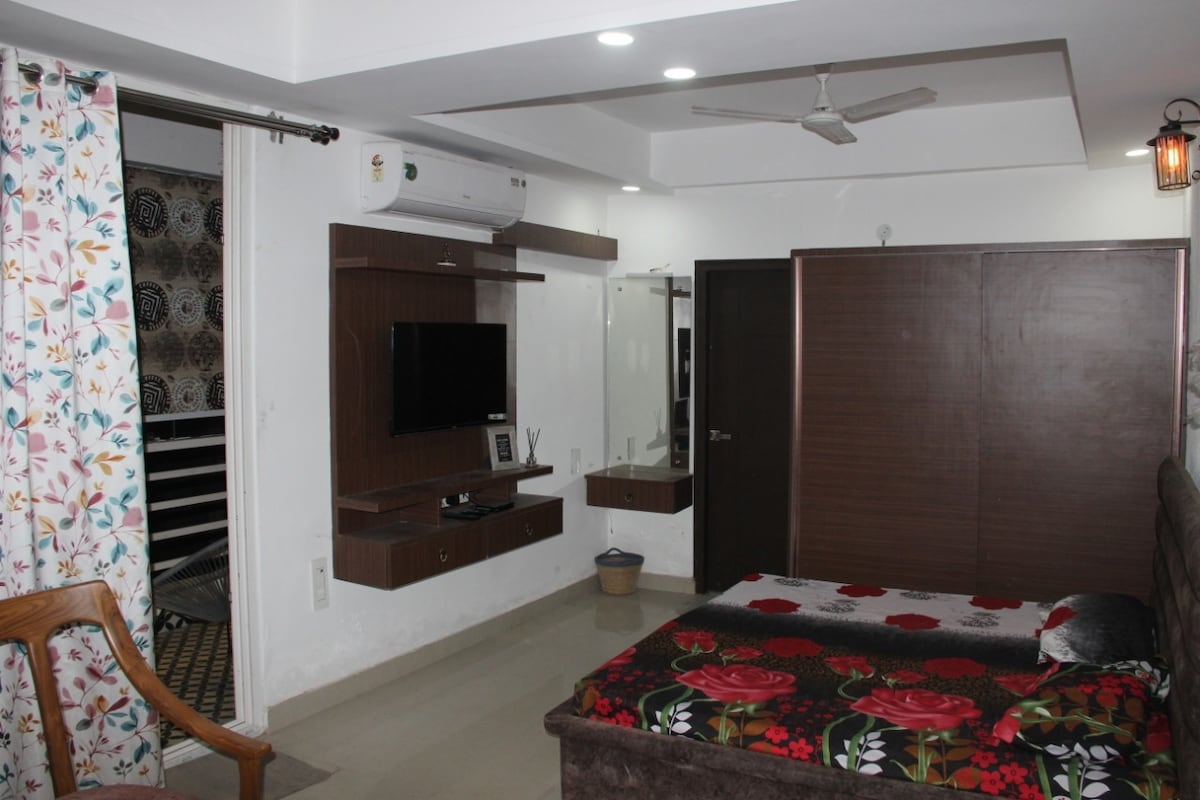 डेहराडून शहराच्या मध्यभागी असलेल्या आमच्या आरामदायक रिट्रीटमध्ये तुमचे स्वागत आहे! आमची मोहक Airbnb प्रॉपर्टी आरामदायी आणि सुविधेचे परिपूर्ण मिश्रण देते. मोठ्या खिडक्यांमधून पुरेशा नैसर्गिक प्रकाशाने भरलेल्या स्टाईलिश सुसज्ज जागेत जा. तुमच्या मनोरंजनासाठी आरामदायक सोफा आणि करमणुकीच्या पर्यायांसह, आमंत्रित लिव्हिंग एरियामध्ये आराम करा. पूर्णपणे सुसज्ज किचन तुमच्या वास्तव्यादरम्यान स्वादिष्ट जेवण बनवण्यासाठी तुम्हाला आवश्यक असलेल्या सर्व गोष्टी प्रदान करते. प्रॉपर्टी ड्रिकुंग मोनॅस्ट्रीजवळ आहे.