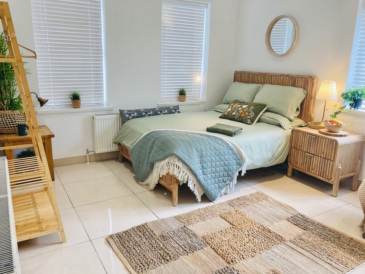 Enjoy a peaceful stay in the rural town of Limavady — ideal for 2 adults or a small family. The space includes a spacious bedroom/studio with smart TV, en-suite, casual seating, and patio doors to a quiet garden. A second small room features a sofa bed and can double as a cosy sitting area. The property also offers a fully equipped kitchen, free Wi-Fi, and private parking for a relaxing and convenient stay.