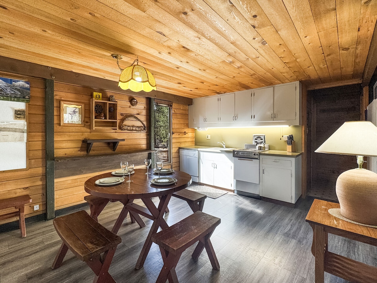 आमचे लहान लॉग केबिन एक आरामदायक गेटअवे आहे, जे हायकिंग, माउंटन बाइकिंग आणि क्रॉस कंट्री स्कीइंगच्या जवळ आहे परंतु बेंड ओरेगॉनच्या सुविधांपासून फक्त 10 मैलांच्या अंतरावर आहे. गॅस रेंज, रेफ्रिजरेटर आणि गॅस फायरप्लेस यासारख्या आधुनिक स्पर्शांसह ही एक अडाणी जागा आहे. बाथरूम केबिनपासून वेगळे आहे - दरवाज्यापासून पायऱ्या. हे प्लंबिंग आणि शॉवरसह पूर्णपणे सुसज्ज आहे. घराच्या सुखसोयींसह घराबाहेरील वातावरण आवडणाऱ्या लोकांसाठी आमची जागा परिपूर्ण आहे. 12 वर्षाखालील मुले नाहीत - आणि दुर्दैवाने, पाळीव प्राणी नाहीत.