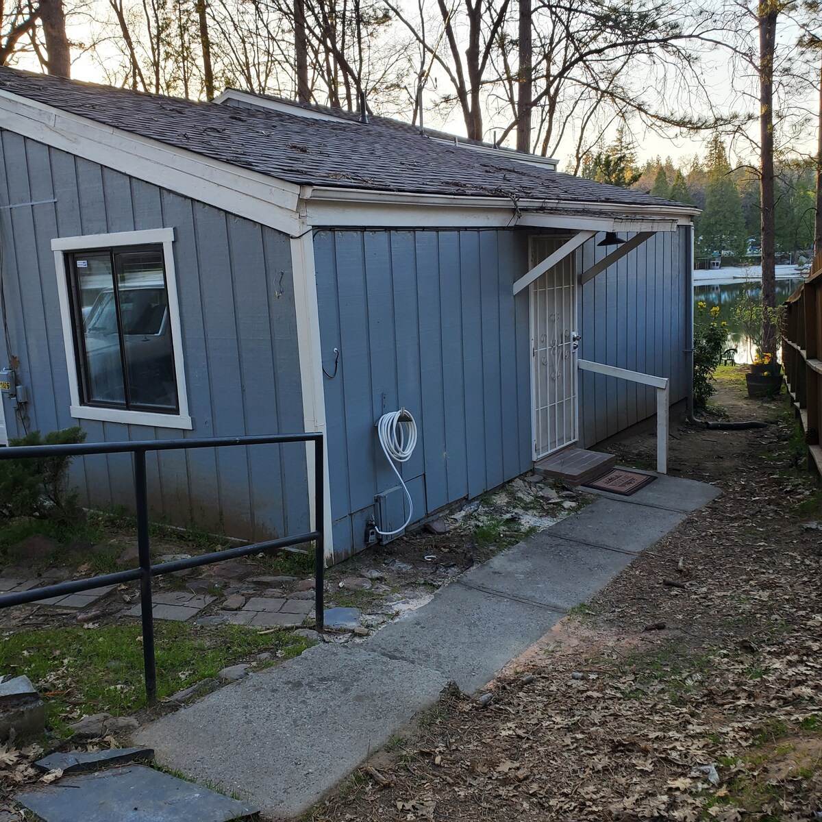 ही स्वत: ची असलेली जागा आमच्या घराचा भाग आहे, परंतु घराच्या अगदी बाजूला एक वेगळी इमारत आहे. तुमच्या खाजगी प्रवेशद्वाराकडे जाण्यासाठी एक चांगला प्रकाश असलेला हॉलवे आहे. ही एक मोठी रूम आहे ज्यात बंद बाथरूम आहे. तिथे शॉवर, टॉयलेट आणि व्हॅनिटी आहे. टब नाही. एक क्वीन साईझ बेड, 6' सोफा, डायनिंग टेबल/खुर्च्या आणि फ्रीज आहे. तुम्ही बार्बेक्यू करू शकता आणि पॅटीओ टेबल वापरू शकता. डेकवरील आरामदायक सीट्सवरून सुंदर सूर्यप्रकाश आणि तारांकित रात्रींचा आनंद घ्या.