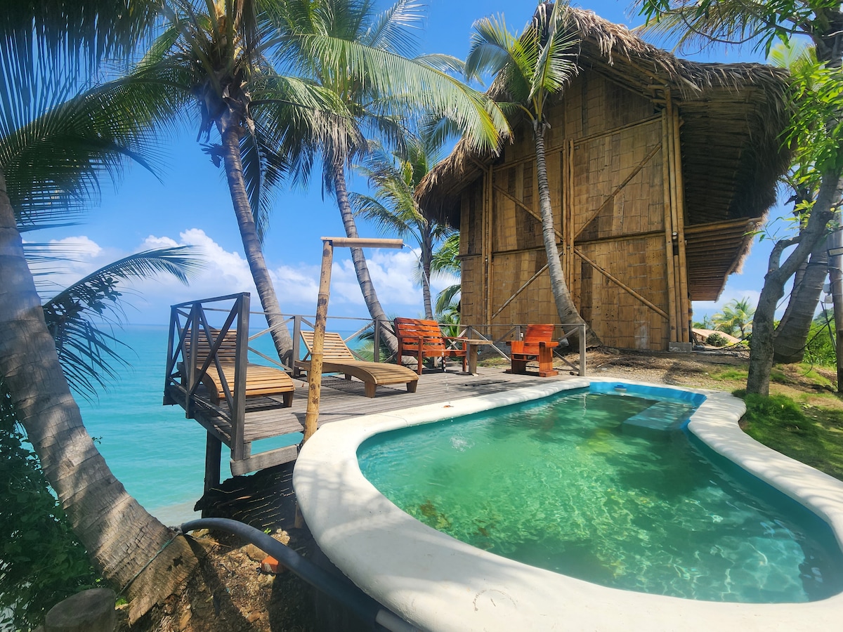 पामचे छप्पर असलेले मोठे खाजगी केबिन