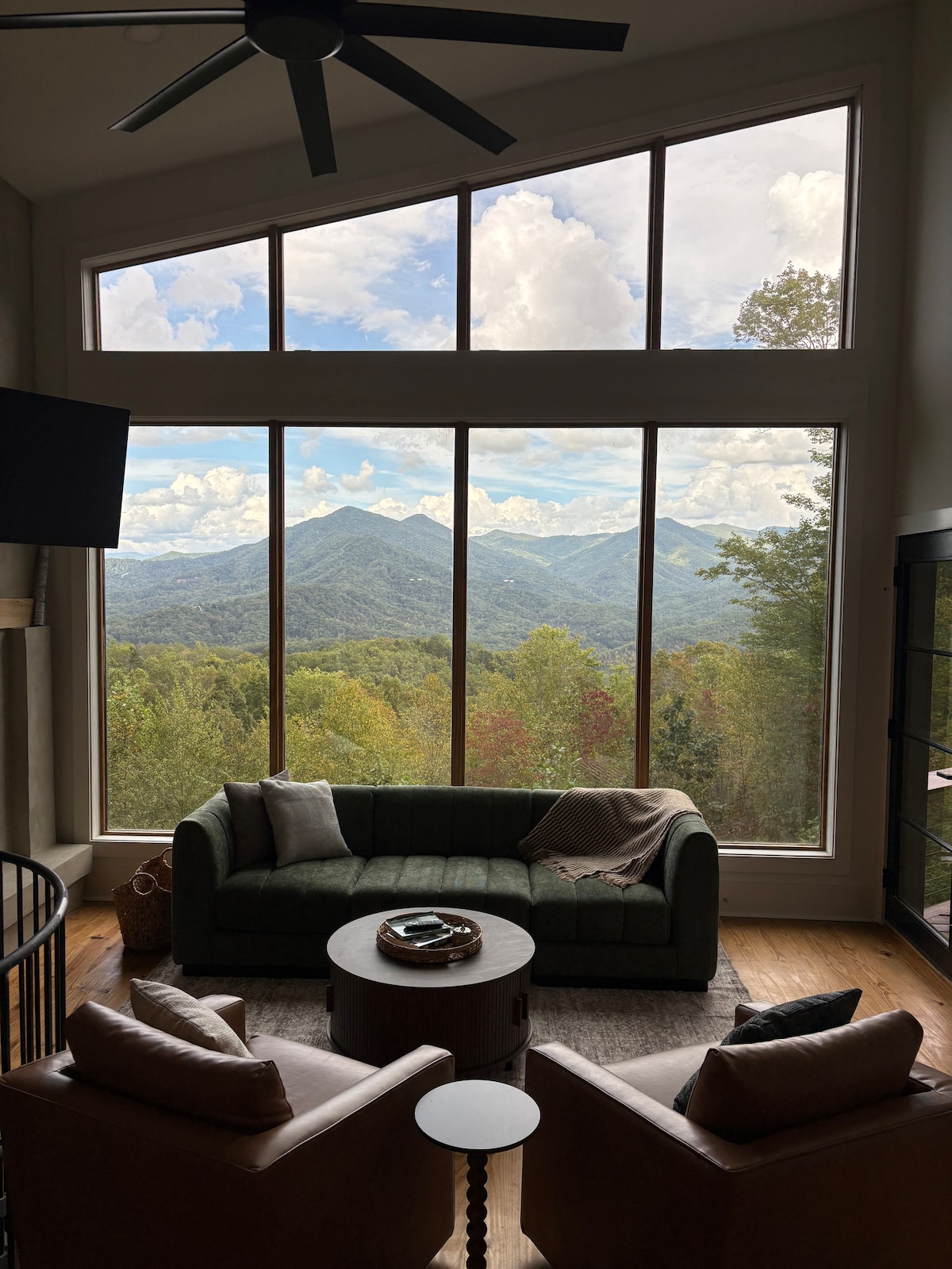 2020 मध्ये बांधलेले हे कस्टम घर विरंगुळ्यासाठी योग्य ठिकाण आहे. खाजगी रस्त्याच्या बाजूला स्थित (4 - व्हील ड्राईव्ह आवश्यक नाही), ते 4.25 एकरवर, ग्रेट स्मॉकी माऊंटन्सच्या भव्य दृश्यांवर आहे. तिथे गेल्यावर तुम्हाला खरोखरच जगापासून दूर गेल्यासारखे वाटते. त्याचे आधुनिक, स्कॅन्डिनेव्हियन - जपानी डिझाईन या प्रदेशासाठी अनोखे आहे. समाविष्ट आहे: मास्टर बेडरूम, स्लीपिंग लॉफ्ट (क्वीन - साईझ फ्युटन आणि कस्टम Twin XL बंक बेड्स); खुले किचन/लिव्हिंग क्षेत्र, झाकलेले आणि खुले अंगण. ब्रायसन सिटी आणि चेरोकीपासून 10 मिनिटांच्या अंतरावर.