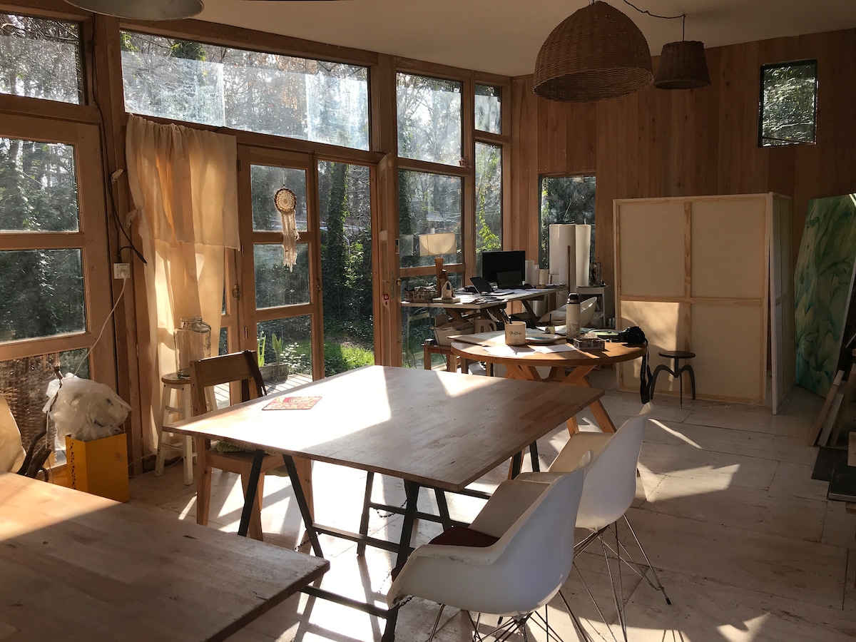 This Tiny Guest House, nestled in a bamboo grove on the grounds of an inspiring art retreat, is just 20 min. from Ezeiza International Airport. Perfect for a stopover or a couple of nights, it offers privacy, Wi-Fi, a comfy bed, garden deck, hammock. Guests may schedule time to enjoy our art studio/gallery, music room, and yoga/dance studio. Optional (subject to availability): yoga, art, and cooking classes/workshops, or a relaxing massages. Free Ezeiza transfer for stays of 2+ nights.