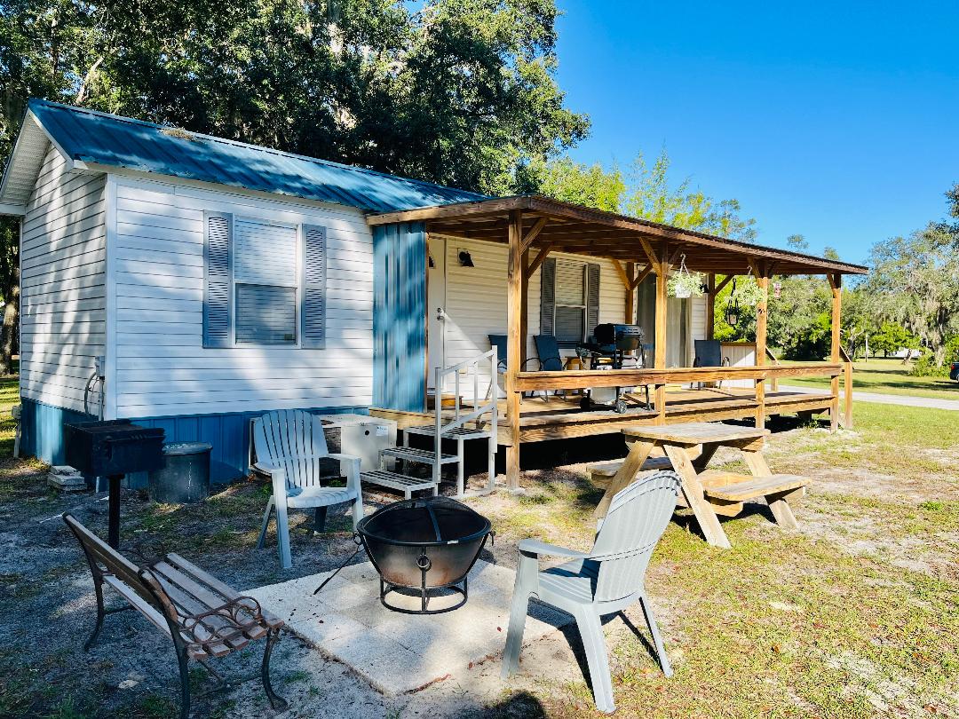 Welcome to our 415 sq. ft. tiny home! Our tiny home features a queen bed with a pull out sofa, a full kitchen, bathroom and big front porch. On property there is a 9ft deep swimming pool, pub (with pool tables/games, jukebox that offers beer/wine and food.) a laundromat and a bathhouse. We do offer plenty of parking for vehicles, boats and trailers if needed. Locally there are multiple springs, scalloping, fishing, hunting, bike trails, antique stores, shopping and much more!