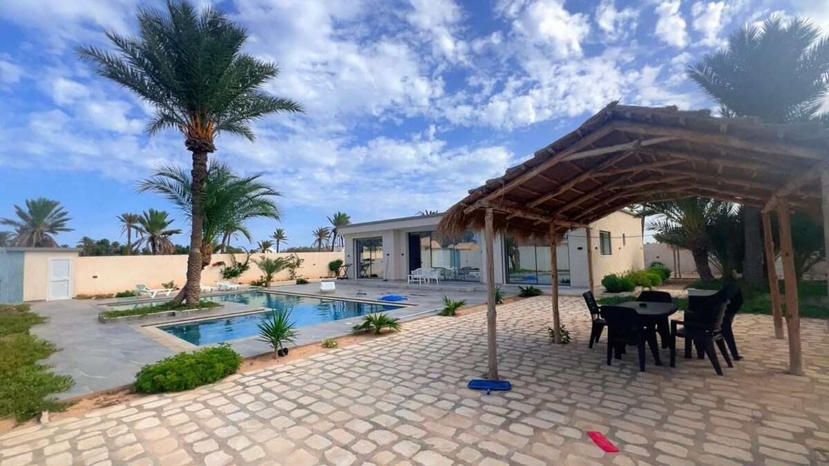 * * * * * * * * * * ** * * * कल्पना करा की तुम्ही जर्बाच्या पॅराडाईज बेटावर आहात, जिथे निळे आकाश अझ्युर समुद्राला भेटते आणि जिथे लक्झरी आणि शांतता सुसंगतपणे मिसळते. या सेटिंगच्या आत: व्हिला ले पाल्मीअर्स हे केवळ एक घर नाही, तर तुमच्या स्वप्नांच्या बेटावर एक अनोखा अनुभव जगण्याचे आमंत्रण आहे. या जागेला तुमचे नवीन घर बनवण्याची संधी देऊ नका.