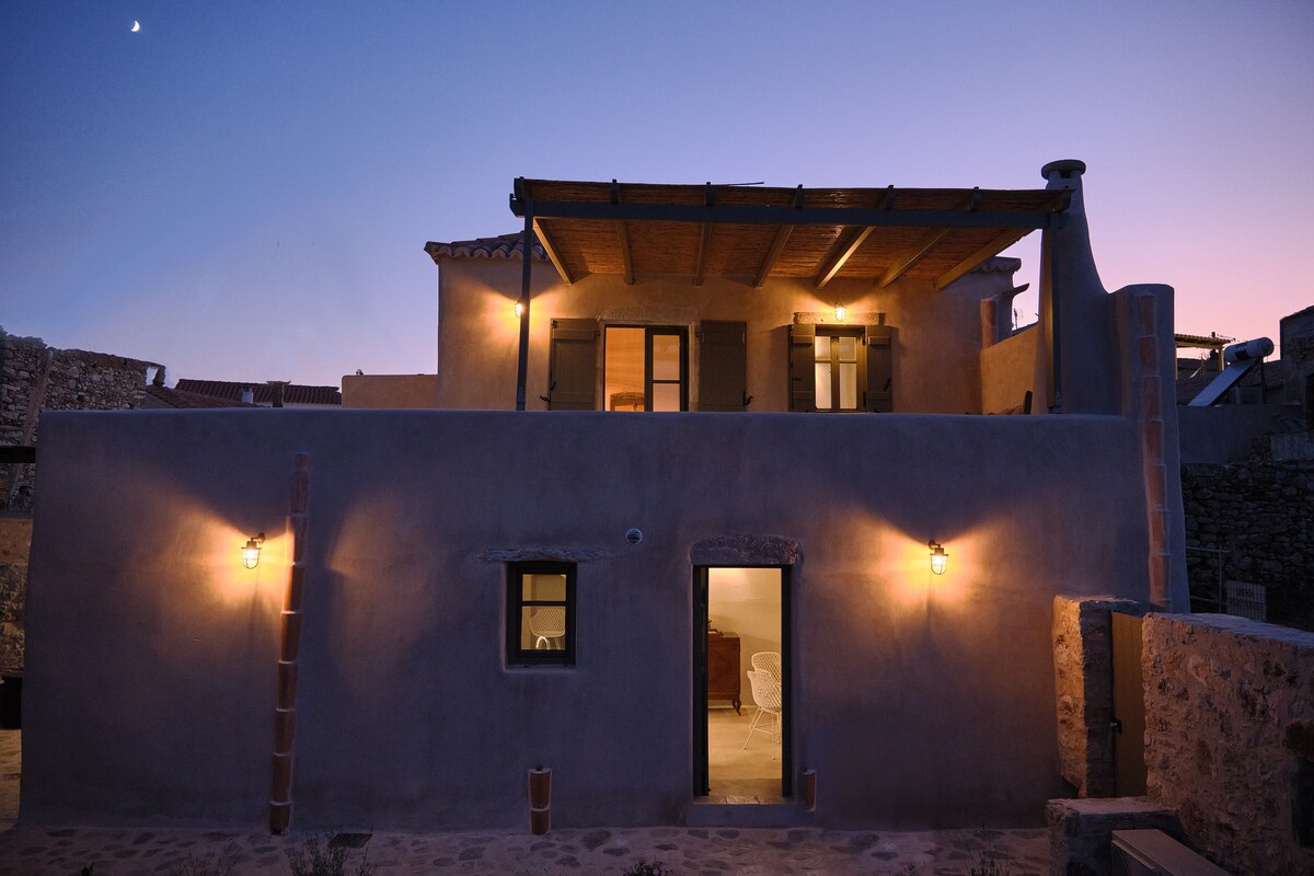 या अप्रतिम किथिरियन पारंपारिक कॉटेजमध्ये विश्रांती घ्या. ऐतिहासिक मिलोपोटामोसच्या समृद्ध आणि विशिष्ट आर्किटेक्चरल हेरिटेज आणि त्याच्या सभोवतालच्या नैसर्गिक सौंदर्याचा पूर्ण आदर करून, आलिशान पण मोहक भावनेसाठी दगडी मजले, उंच मखमली छत आणि पुरातन तपशीलांसह या घराचे नुकतेच नूतनीकरण केले गेले आहे. दुकाने आणि रेस्टॉरंट फक्त 5 मिनिटांच्या अंतरावर असले तरी, ती जागा शांत आणि एकाकी वाटते!!!