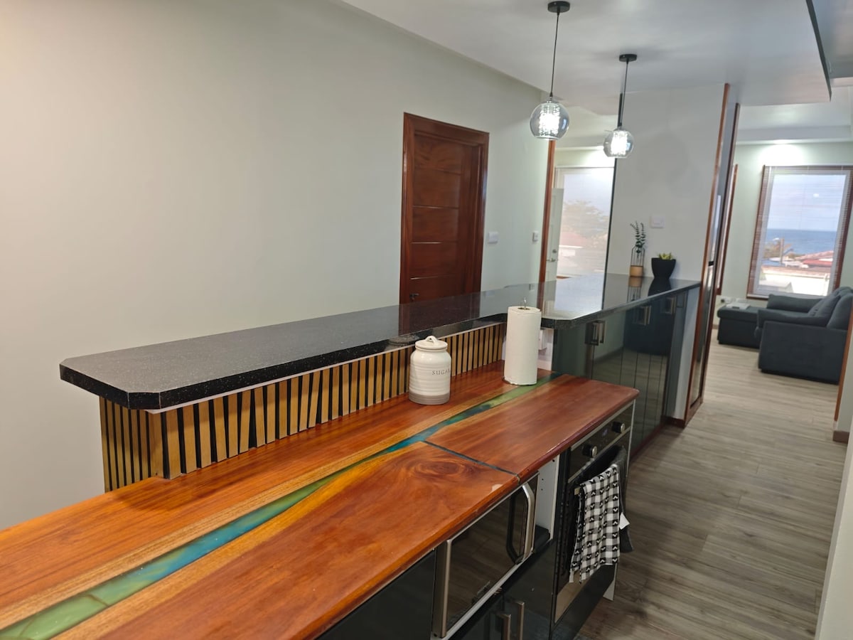 This beautiful unit will reward you with an amazing and spectacular ocean view, walking distance from Dominica's most popular beach "Mero Beach". This unit has two queen size bed, fully equipped kitchen stocked with all the items required for cooking. A four burner gas stove/oven and microwave is ready for you to cook your favorite dish. It's also equipped with internet, cable TV, and a blue tooth speaker. We supply beach cooler and beach towels for you to use at the beach. Welcome to Dominica