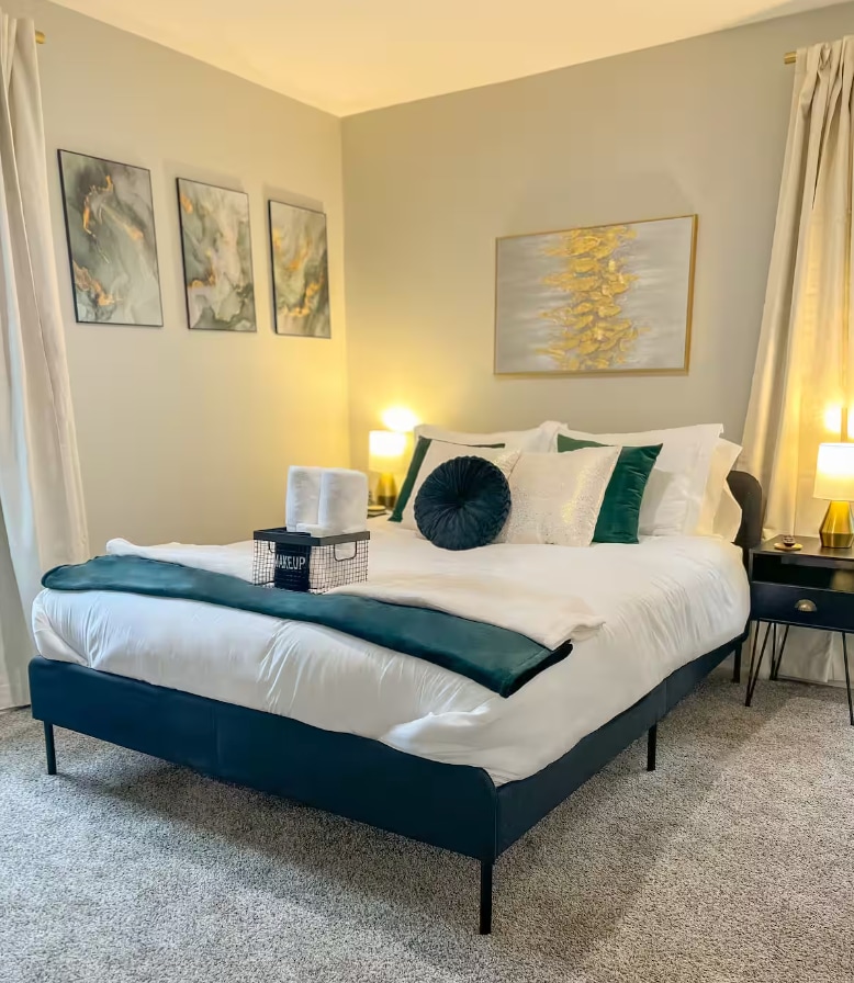 घरापासून दूर असलेल्या तुमच्या सुंदर आणि स्टाईलिश घराचा आनंद घ्या! गेस्ट्सना उत्तम भाड्याने लक्झरीचा एक मोठा तुकडा दिला जातो. आज शहराच्या दृश्यांसह ही 1king आकाराची बेडरूम, सेक्शनल सोफा आणि पूर्ण किचन बुक करा! अपार्टमेंटमध्ये लक्झरीने भरलेल्या रूम्स, स्टाईलिश सजावट आणि आरामदायी फर्निचरसह एक उज्ज्वल आणि उबदार अनुभव आहे. तुमच्या वास्तव्यादरम्यान अपार्टमेंटमधील कोणतीही गोष्ट तुमच्या मालकीची आहे. तुम्ही सहज ॲक्सेस, सेल्फ सर्व्हिस चेक इनसह आल्यावर स्वत:ला घरी बनवा. वायफाय, केबल आणि ॲप्स!