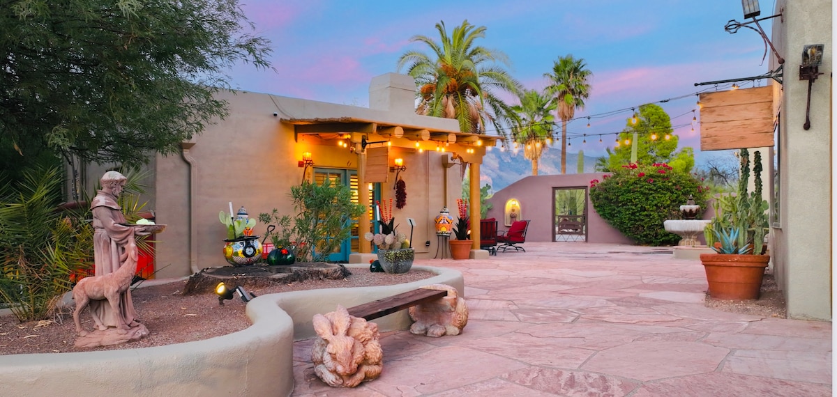 सबिनो कॅन्यनपासून फक्त 5 मिनिटांच्या अंतरावर असलेल्या या शांत, खाजगी गेस्ट घराचा आनंद घ्या! व्यावसायिकरित्या डिझाईन केलेली ही गेटअवे किंग बेड, आरामदायक लिव्हिंग रूम, इलेक्ट्रिक फायरप्लेस, स्मार्ट टीव्ही, रेट्रो फ्रिज, विनामूल्य कॉफी आणि स्नॅक्ससह पूर्णपणे सुसज्ज आहे. आऊटडोअर पॅटीओवर तुमची सकाळची कॉफी प्या, पक्ष्यांची आणि ॲरिझोना सनची प्रशंसा करा! किराणा खरेदी, रेस्टॉरंट्स, स्थानिक स्टोअर्सपासून 5 मिनिटांच्या अंतरावर, आगुआ कॅलिएंट पार्क आणि ॲरिझोना नॅशनल गोल्फ क्लबपासून 15 मिनिटांच्या अंतरावर. माऊंट लेमन आणि सर्वोत्तम बाइकिंग ट्रेल्स एक्सप्लोर करा!