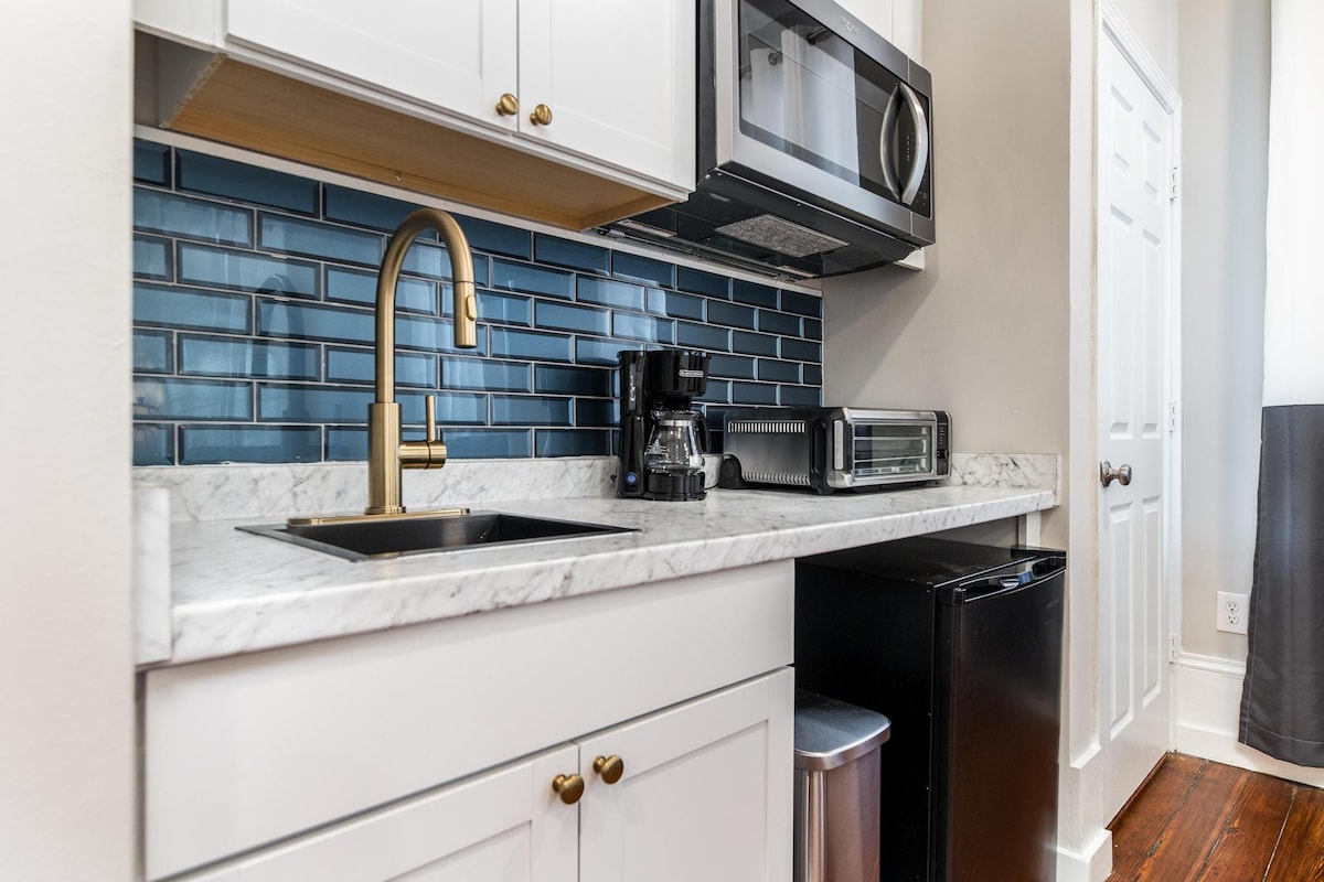 छान रिट्रीटसाठी तुम्हाला आवश्यक असलेल्या सर्व गोष्टींनी सुसज्ज अप्रतिम स्टुडिओ. एका सुंदर ऐतिहासिक घरात स्थित, तुम्ही किचनसह पूर्ण झालेल्या तुमच्या स्वतःच्या खाजगी जागेवर परत जाऊ शकता. ॲट्रियम हेल्थ सेंटरपासून एक मैलापेक्षा कमी अंतरावर आणि लोकप्रिय मॅकन रेस्टॉरंट्सपर्यंत चालत जाणारे अंतर. हे हाय स्पीड इंटरनेट तसेच नेटफ्लिक्सशी जोडलेला स्मार्ट टीव्हीसह सुसज्ज आहे. गेस्टच्या वापरासाठी प्रॉपर्टीवर सोयीस्करपणे लाँड्री रूम आहे.