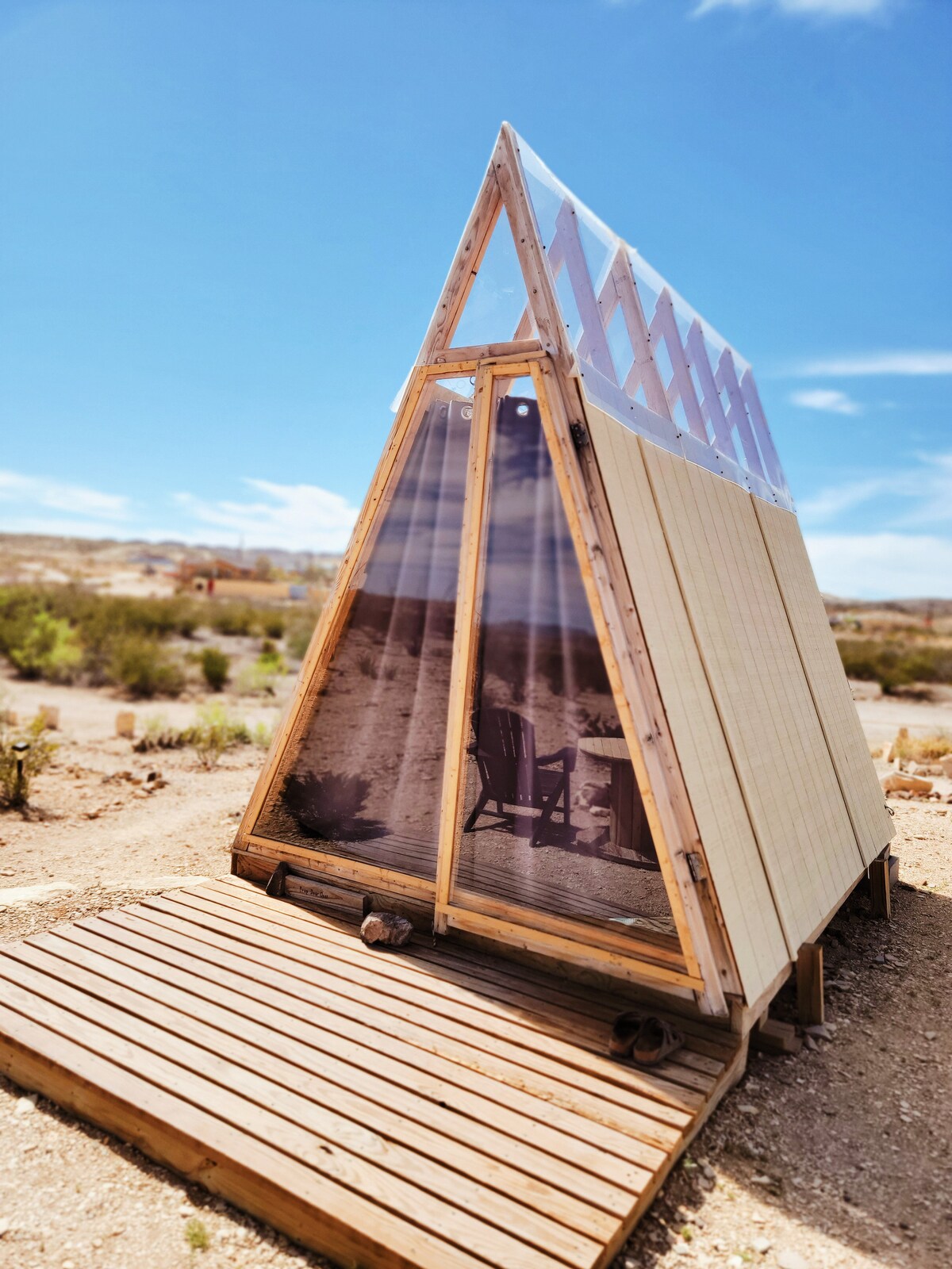वाळवंटातील सौंदर्याचे 360अंश दृश्यांचा आणि आमच्या 320 एकर ऑफ - ग्रिड प्रॉपर्टीवर मऊ क्वीन बेड, गरम पाणी शॉवर आणि वैयक्तिक चार्जिंग स्टेशनच्या आरामाचा आनंद घ्या. ⛺️ प्रायव्हेट टेंट साईट्स ड्युन्स, झपाटा फॉल्स, हॉट स्प्रिंग्स आणि इतर बऱ्याच गोष्टींपासून 📍25 मिनिटांच्या अंतरावर. तुम्हाला या गोष्टींचा ॲक्सेस देखील मिळतो: • शेअर केलेले आऊटडोअर किचन आणि डिश सिंक • ब्लॅकस्टोन ग्रिल आणि बार्बेक्यू • शेअर केलेले इनडोअर बाथरूम्स (ड्राईव्ह किंवा वॉक) • ग्रुप आणि प्रायव्हेट कॅम्पफायर • स्टारगेझिंगसाठी हॅमॉक्स आम्ही वाळवंटात आहोत, त्यामुळे वाळवंटातील हवामानासाठी तयार रहा!🏜️