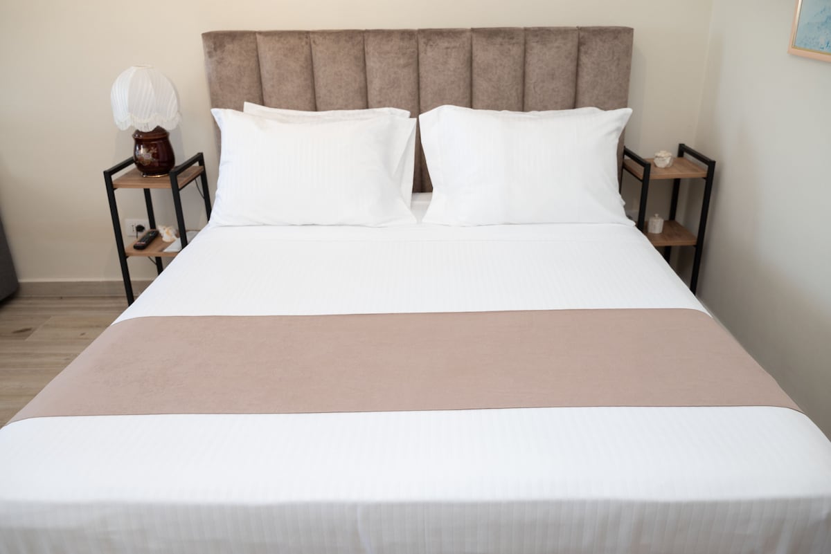 तीन जणांसाठी आमच्या मोहक सुईटमध्ये समुद्रकिनार्यावरील शांततेत रममाण व्हा. तुमच्या उबदार बेडवरून चित्तवेधक ॲड्रियाटिक दृश्यांसाठी जागे व्हा, नंतर चमकदार समुद्राकडे पाहत असलेल्या या आधुनिक सुईटमध्ये आराम करा. त्रास - मुक्त स्वतःहून चेक इन आणि द्वि - साप्ताहिक सेवेच्या सुविधेचा आनंद घ्या. लिफ्ट हवी आहे का? तुमच्या सोयीसाठी खाजगी ट्रान्सफर्स उपलब्ध आहेत. इतरांप्रमाणे स्वप्नवत किनारपट्टीच्या सुटकेमध्ये जा. मरीना सुईट्समधील आमची टीम ड्युरेसमधील सर्वोत्तम सल्ल्यांसाठी नेहमीच तुमच्या सेवेत असते, जेणेकरून तुमचे वास्तव्य संस्मरणीय बनवता येईल.