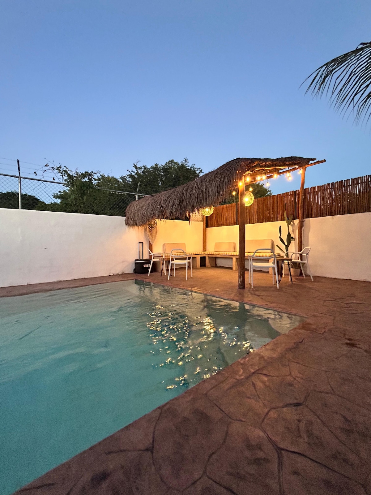 तुमचा खाजगी ओएसिस तुमची वाट पाहत आहे 🏊! या सुंदर एक मजली घरात आरामदायक आणि प्रशस्त जागेचा आनंद घ्या — पायऱ्या नाहीत — 3 बेडरूम्स आणि 3 पूर्ण बाथरूम्स आहेत, कुटुंबांसाठी, मित्रमैत्रिणींसाठी किंवा व्यावसायिकांसाठी आदर्श आहे. एलईडी लाइट्स आणि स्वयंचलित फिल्टरेशन सिस्टमसह खाजगी 7×4 मीटर स्विमिंग पूलमध्ये आराम करा, जो ताजेतवाने करणाऱ्या डुबकीसाठी किंवा ताऱ्यांखाली पोहण्यासाठी परिपूर्ण आहे. संपूर्ण सुविधांनी युक्त किचन, वॉशर आणि ड्रायर आणि 24/7 सुरक्षा असलेल्या गेटेड कम्युनिटीमध्ये जास्तीत जास्त 3 कार्ससाठी पार्किंग. Oxxo आणि वॉलमार्ट अगदी जवळ आहेत.