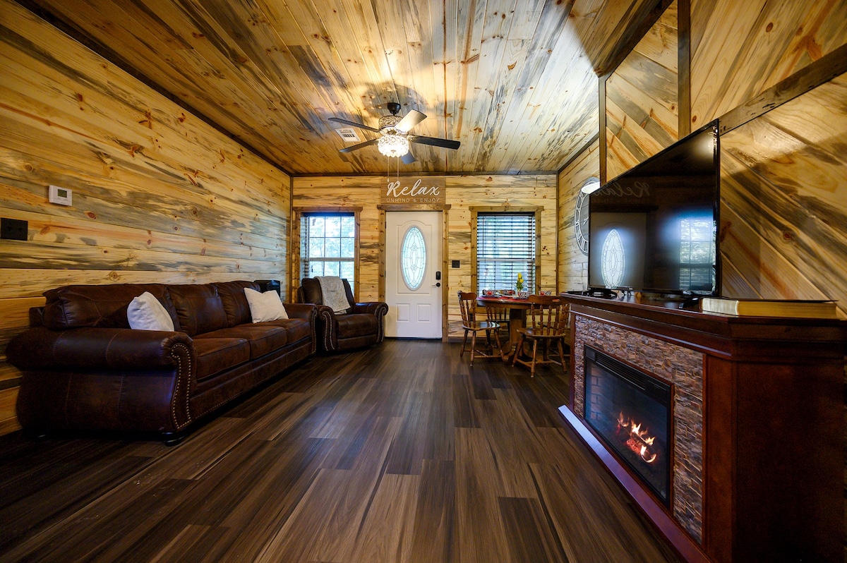 नदीच्या किनाऱ्यावरील या शांत आरामदायक केबिनमध्ये आराम करा! गुरेढोरे आणि घोडे यांच्यासह निसर्गाने वेढलेले, हे पाळीव प्राण्यांसाठी अनुकूल, एका एक खोली असलेले प्रशस्त केबिन आहे ज्यात बाथरूम, वॉशर/ड्रायर, हीट/एअर, किंग-साईझ बेड आणि एक सोफा आहे जो पूर्ण आकाराच्या बेडमध्ये खेचला जातो. किचनमध्ये एक मोठा आयलंड आहे आणि ग्रिल आणि फर्निचरसह एक कव्हर्ड आउटडोर पॅटिओ आहे.