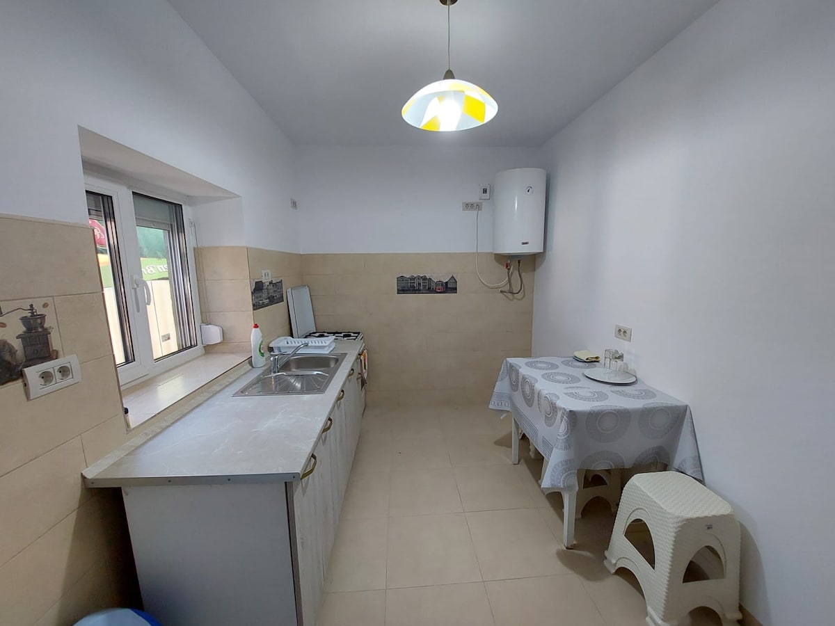 रूम लहान आणि जिव्हाळ्याची आहे, पार्कीटसह, रूमचा आकार 3x3 आहे आणि बाथरूम 3x1.60 मीटर आहे! रूम 1 आणि रूम 2 वरच्या मजल्यावर आहेत आणि सोफा, टेबले आणि सन लाऊंजर्ससह एक कॉमन टेरेस आहे! तळमजल्यावर तुम्हाला आवश्यक असलेल्या सर्व गोष्टींनी सुसज्ज एक मोठे किचन आहे आणि लॉन आणि फुले आणि 2 झोके असलेल्या 250 मीटर गार्डनसमोर सोफा आणि टेबलांसह एक मोठी टेरेस आहे! रूम्स 1 आणि 2 वातानुकूलित आहेत! सिटी सेंटरपासूनचे अंतर 5 मिनिटांच्या अंतरावर आहे!