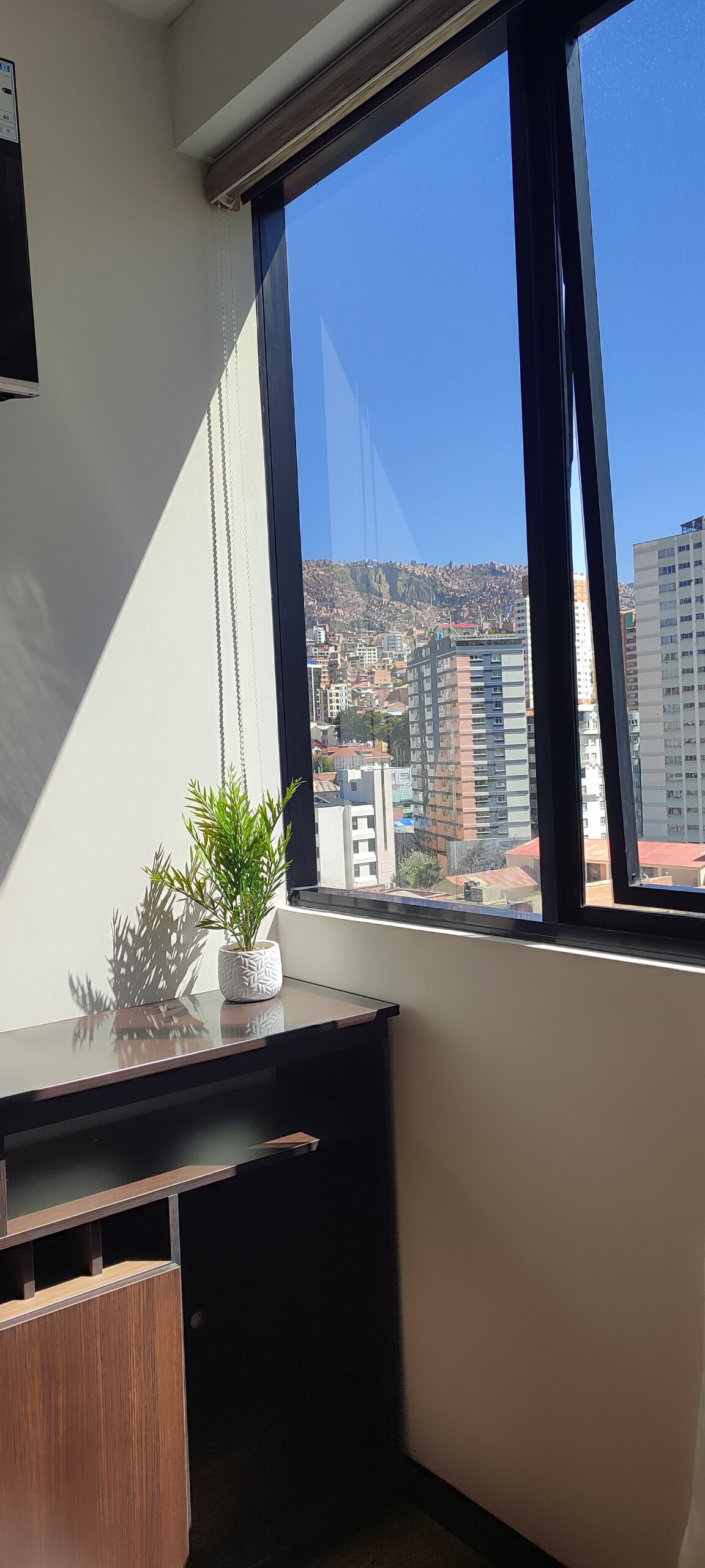 Enjoy a unique experience in our panoramic apartment 🏙️ in the heart of La Paz. Surrounded by restaurants, cafes, attractions, plazas, pubs, supermarkets, and much more. Located on the 18th floor, you won't miss any of La Paz's beauty. The apartment is equipped with everything you need to make you feel at home 🏠 . From the doorstep, you'll find transportation to all points of the city 🚌. The building has 24-hour security and surveillance for your safety.