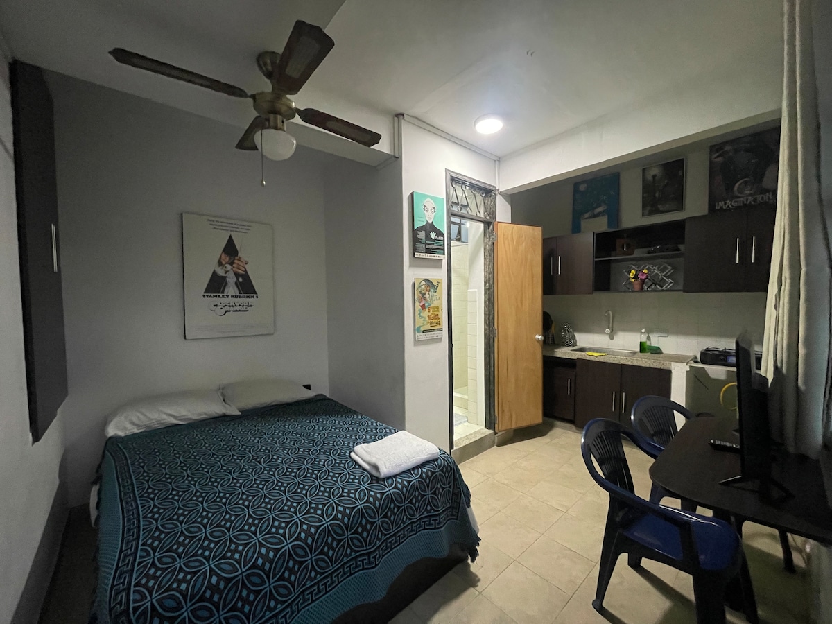 या मध्यवर्ती आणि शांत अपार्टमेंट स्टुडिओमध्ये स्वत: ला घरी बनवा. फक्त काही पायर्यांच्या अंतरावर असलेल्या रेस्टॉरंट्स, सुपरमार्केट्स आणि सौंदर्याच्या क्लिनिकच्या निकटतेचा आनंद घ्या. स्वतंत्र प्रवेशद्वारासह आणि तिसर्या मजल्यावर, तुम्हाला आवश्यक असलेल्या सर्व गोष्टी असलेले सुसज्ज किचन, नेटफ्लिक्स, गरम पाणी आणि एअर कंडिशनिंगसह शॉवर.