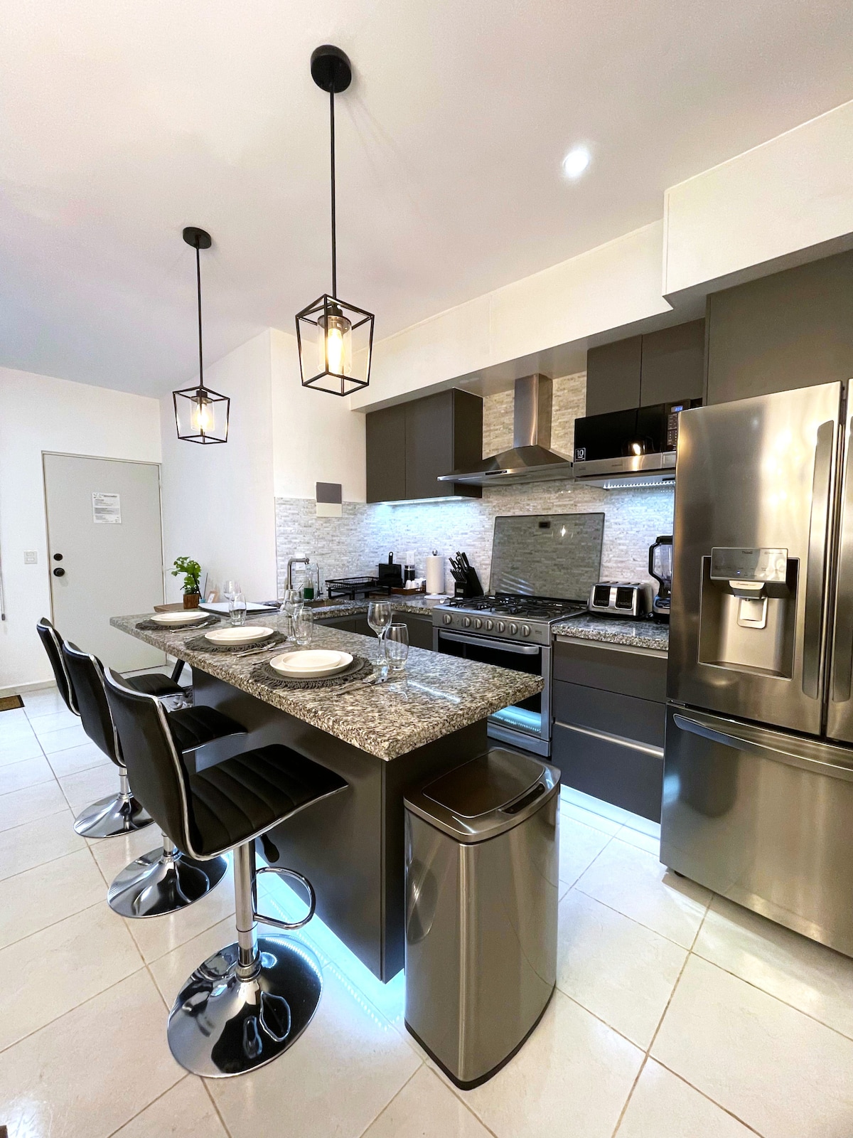पूर्ण सुसज्ज भाड्याच्या जागेत एक स्वयंपाकघर आणि तुम्हाला एक महिना किंवा त्याहून अधिक काळ आरामात राहण्यासाठी आवश्यक असलेल्या सुविधा समाविष्ट आहेत. सबलेट करण्यासाठी हा एक उत्तम पर्याय आहे.