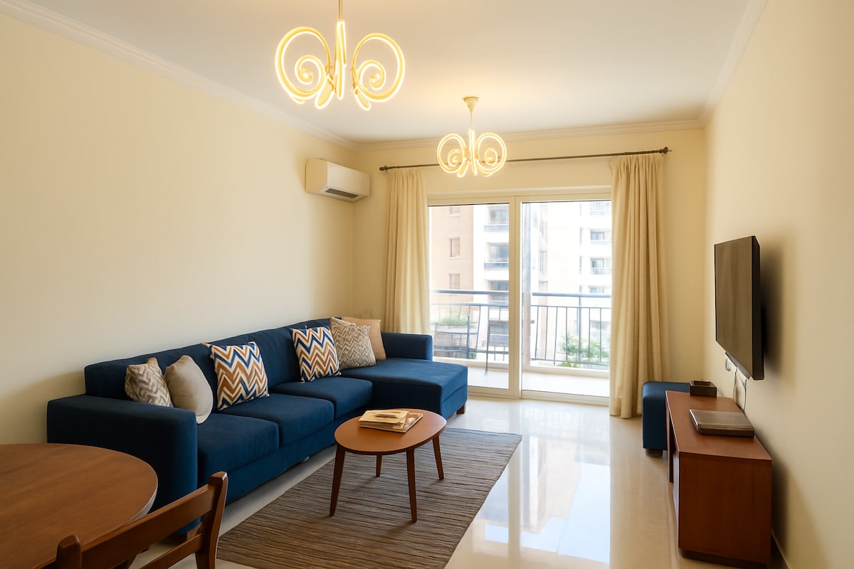 Madinaty 2BR ~ Garden View~ Free Parking~ wifi+A/c
