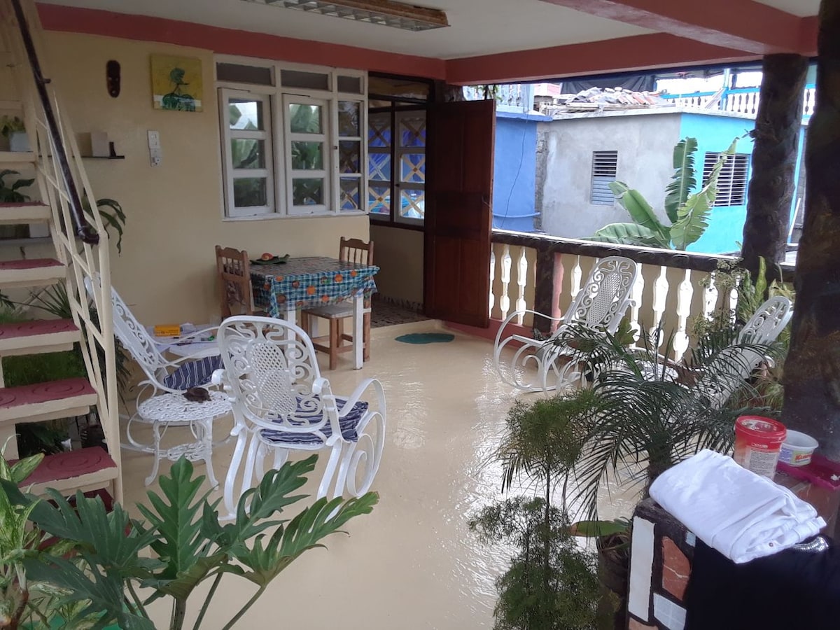 casa independiente de 3 niveles frente al mar y al Yunque de Baracoa , tiene terraza con vista panaoramica al mar , monta├▒as y ciudad , balcon vista al mar y ba├▒o privado en la habitaci├│n ,2 cocinas y 2 comedores equipados , sala de estar y ba├▒o de servicio extra. ofertamos servicios de cocteleria, desayunos y cenas.