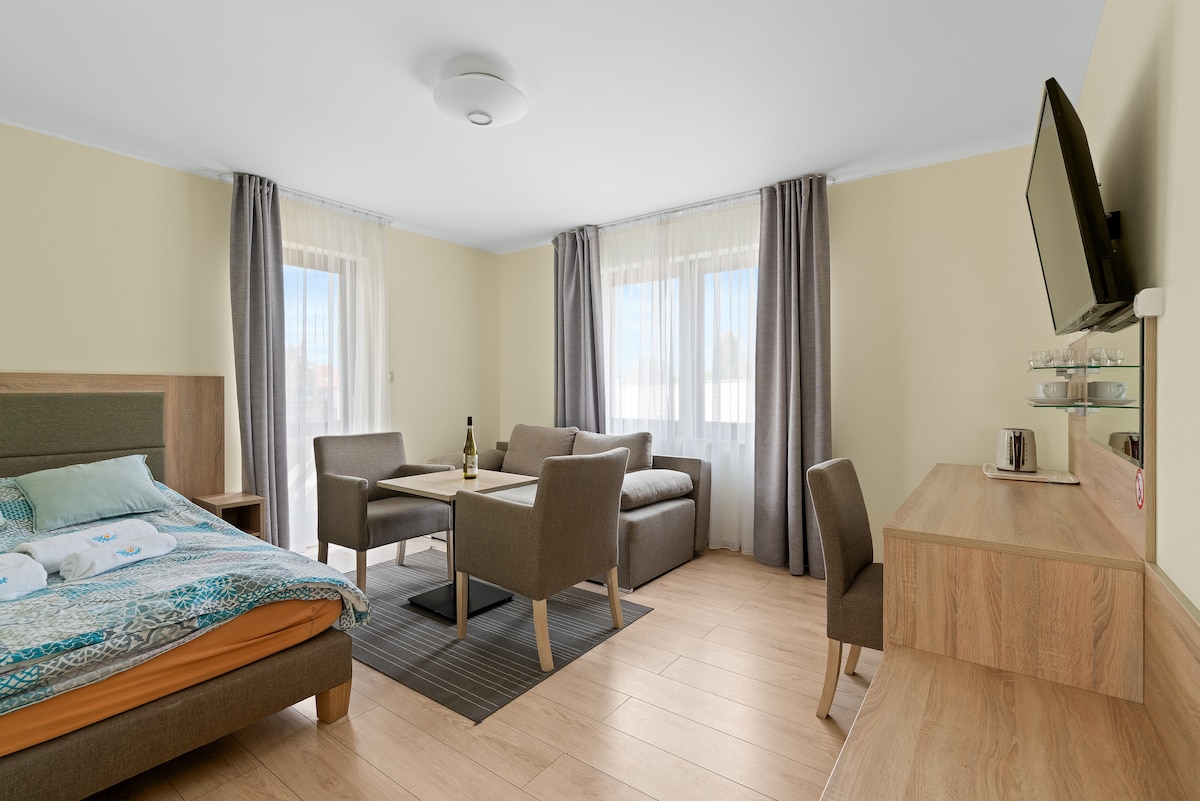 जुन्या शहराच्या मध्यभागी असलेले अपार्टमेंट तुम्हाला ऐतिहासिक लँडमार्क्स, रेस्टॉरंट्स आणि मोहक रस्त्यांच्या निकटतेसह मोहित करेल. आरामदायक, जलद इंटरनेट आणि सुरक्षित पार्किंगचा आनंद घ्या. हे रोमँटिक वीकेंड किंवा बिझनेस ट्रिपसाठी योग्य आहे