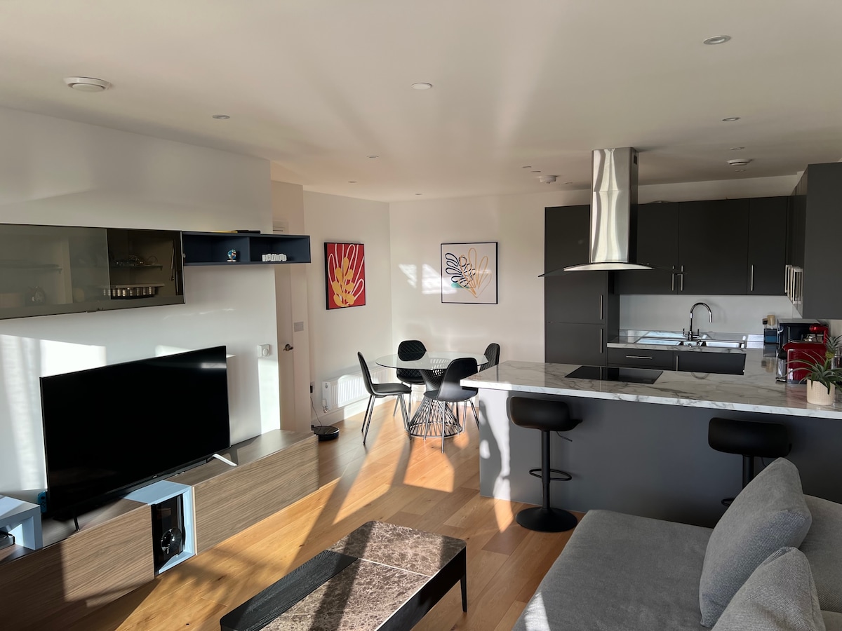 आधुनिक अपार्टमेंट, बेल्सिझ पार्क स्टेशनपासून 2 मिनिटांच्या अंतरावर