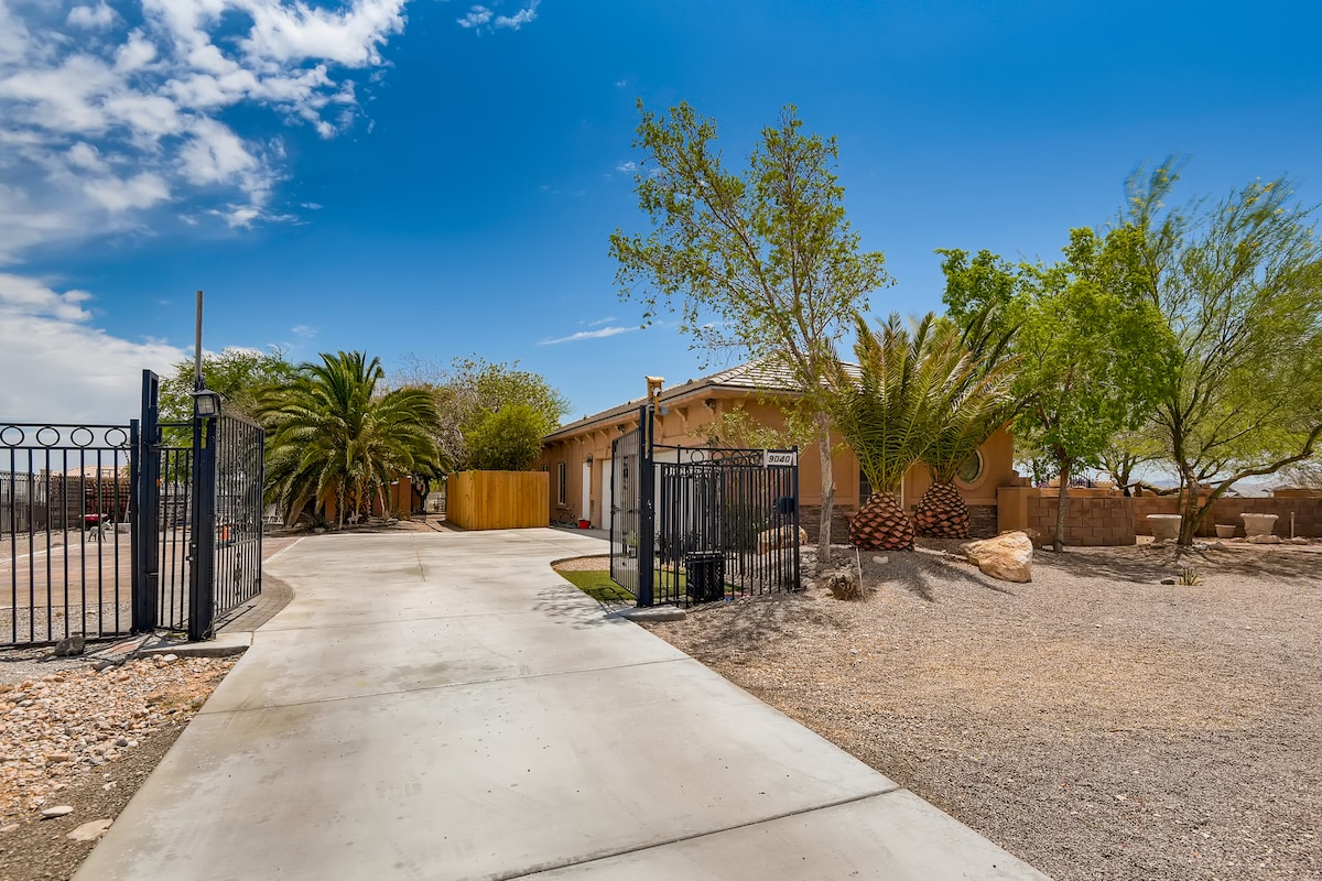 2023 मध्ये बांधलेले हे नवीन घर ग्रुप ट्रिप्ससाठी योग्य आहे. पट्टीपासून फक्त 9 मैलांच्या अंतरावर आहे. मध्यवर्ती ठिकाणी असलेल्या या स्टाईलिश अनुभवाचा आनंद घ्या. तुम्ही पट्टीवर साहस करण्याचा विचार करत असाल, सुंदर, हिरव्या कोर्सवर गोल्फ शोधत असाल किंवा भव्य रेड रॉक कॅन्यनचा अनुभव घेत असाल, तर ही तुमच्यासाठी योग्य जागा आहे. आमचे घर तुमच्या घरापासून दूर असलेले डिलक्स आश्रयस्थान असू शकते. तुमच्या प्रियजनांसोबत वेळ घालवा आणि तुमच्या पुढील साहसासाठी तयार व्हा! **कृपया लक्षात घ्या की हे पार्टी नसलेले कठोर घर आहे.**