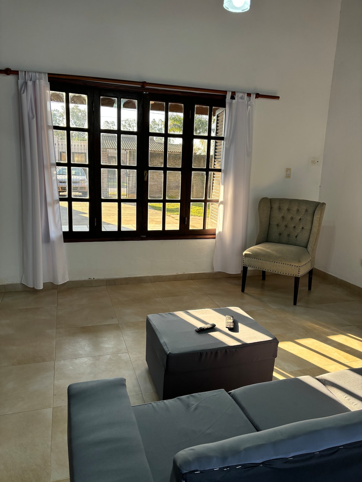Rel├бjate en este alojamiento tranquilo y espacioso. El alojamiento cuenta con cocina equipada, comedor, sala de estar, ba├▒o, tres habitaciones, ropa de cama, parking y jard├нn con parrilla. Equipado para seis personas. Cuenta con hermoso patio con parrilla, y quincho para disfrutar. Con predio cerrado, ideal para ni├▒os y mascotas. Un espacio ├║nico para descansar.