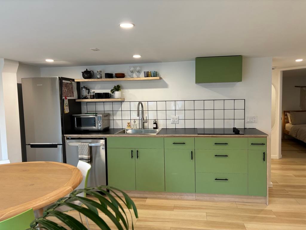 आमच्या 550sf शाश्वतपणे बांधलेल्या मध्य - शतकातील स्वयंपूर्ण स्टुडिओ सुईटमध्ये आपले स्वागत आहे. कार - फ्री ट्रेल (30 मिनिटे), 10 मिनिटांची बाईक, 15 मिनिटांच्या बसवर डाउनटाउनमध्ये चालत जा. सर्वोत्तम स्थानिक बेकरी आणि थाई खाद्यपदार्थ काही मिनिटांच्या अंतरावर आहेत. * जर तुम्ही उंच असाल, तर हा सुईट कदाचित तुमच्यासाठी नसेल! 100 वर्षे जुन्या बीम्स राखून ठेवल्या गेल्या की काही ठिकाणी उंची 1.75मीटर (5'10") पर्यंत जाते. * हे एक केमिकल आणि SCENT - FREE घर आहे. कृपया बुकिंग करण्यापूर्वी आमच्या घराच्या नियमांना सहमती द्या. आम्ही LBGTQ + समर्थक आणि त्वचेचा रंग - आणि विश्वास - सर्वसमावेशक कुटुंब आहोत.