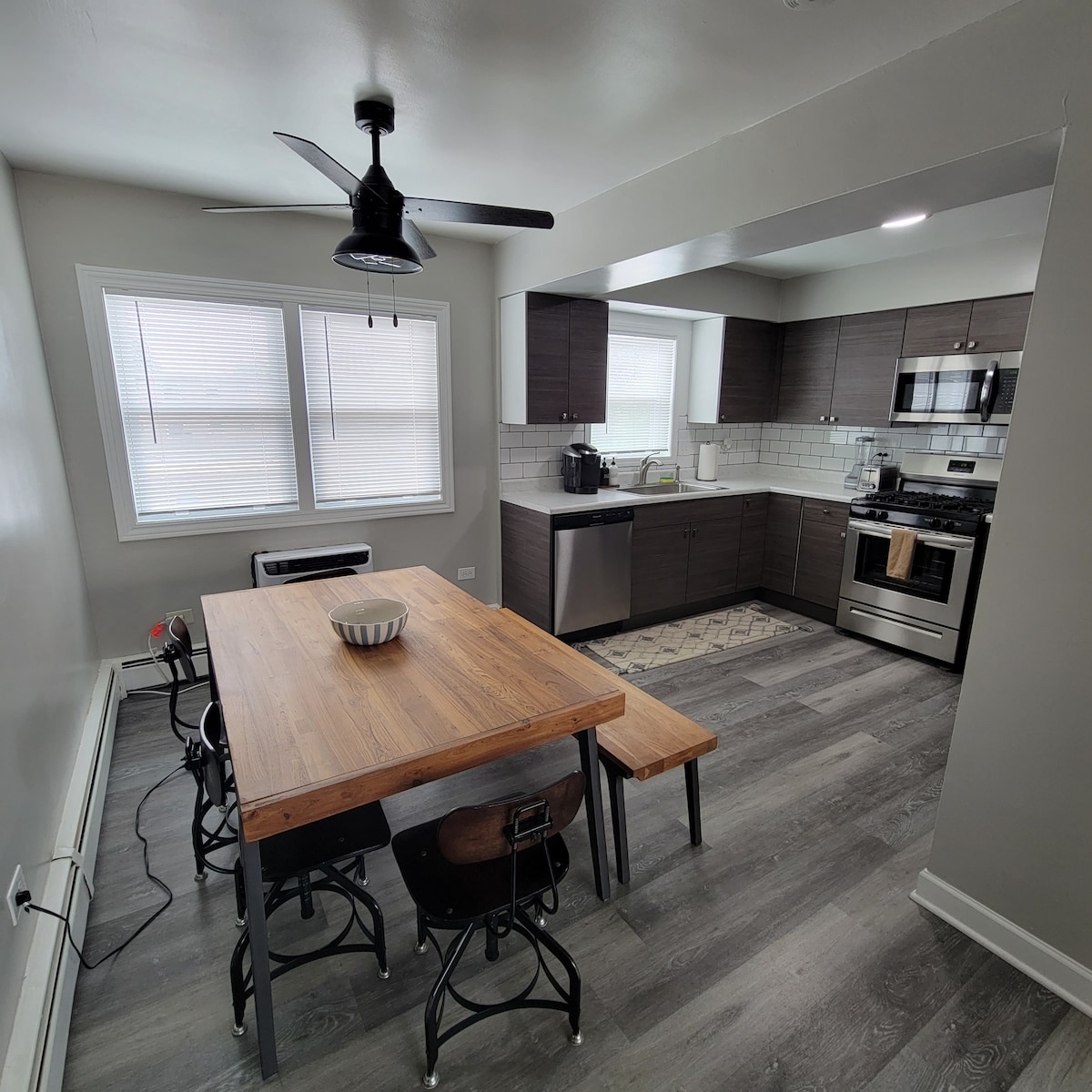 Great location. recently upgraded. Space: This is a new guest suite in the basement of my home. The suite is equipped with a full kitchen featuring high-quality appliances. The suite includes a large bathroom, a bedroom with a new queen-size mattress, and a washer and dryer onsite. The suite offers a peaceful and comfortable place to stay. A 2 block walk will get you to the commuter train, Subway sandwiches, an Italian deli, CVS Pharmacy, and Starbucks.