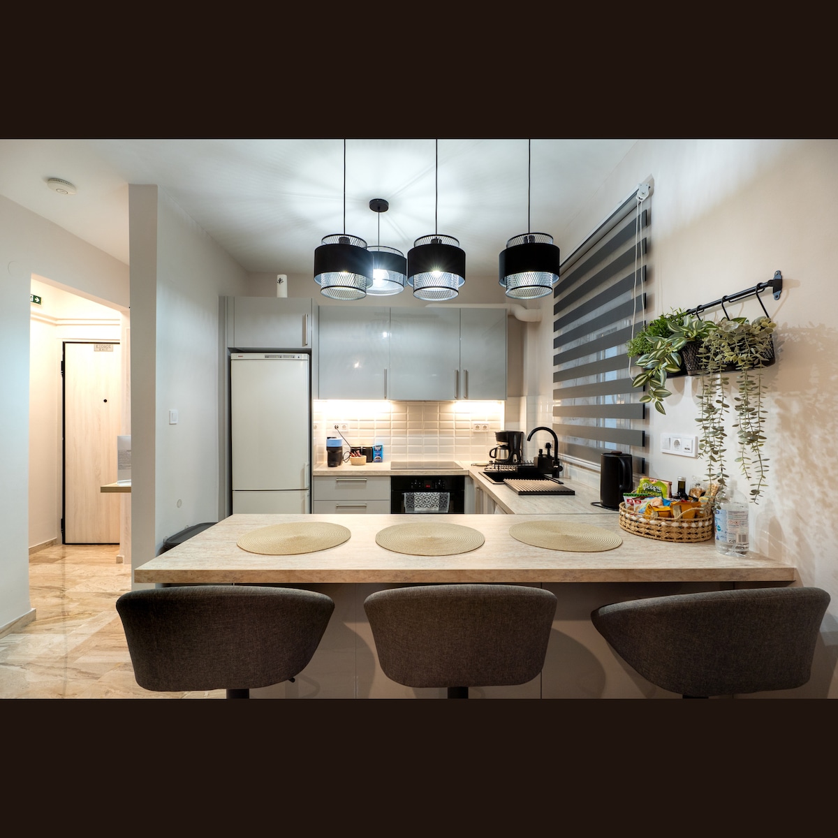 गेस्ट मागू शकतील अशा सर्व गोष्टींसह अप्रतिम आधुनिक आणि सुसज्ज अपार्टमेंट. आश्चर्यकारकपणे मध्यवर्ती लोकेशन, सीफ्रंटपासून फक्त 1 मिनिटाच्या अंतरावर, व्हाईट टॉवरपासून 3 मिनिटांच्या अंतरावर आणि शहराच्या मध्यभागी असलेल्या इतर प्रत्येक महत्त्वाच्या जागेपासून सुमारे 10 मिनिटांच्या अंतरावर! ही अद्भुत जागा सुसज्ज करण्यासाठी आणि सुसज्ज करण्यासाठी शून्य खर्च वाचवला गेला आहे, लाकडाचा मुख्य घटक म्हणून. नेस्प्रेसो मशीन, प्रीमियम लक्झरी गादी, हाय स्पीड इंटरनेट, विनामूल्य नेटफ्लिक्स, वॉशर/ड्रायर आणि बरेच काही यासह पूर्णपणे सुसज्ज किचन!