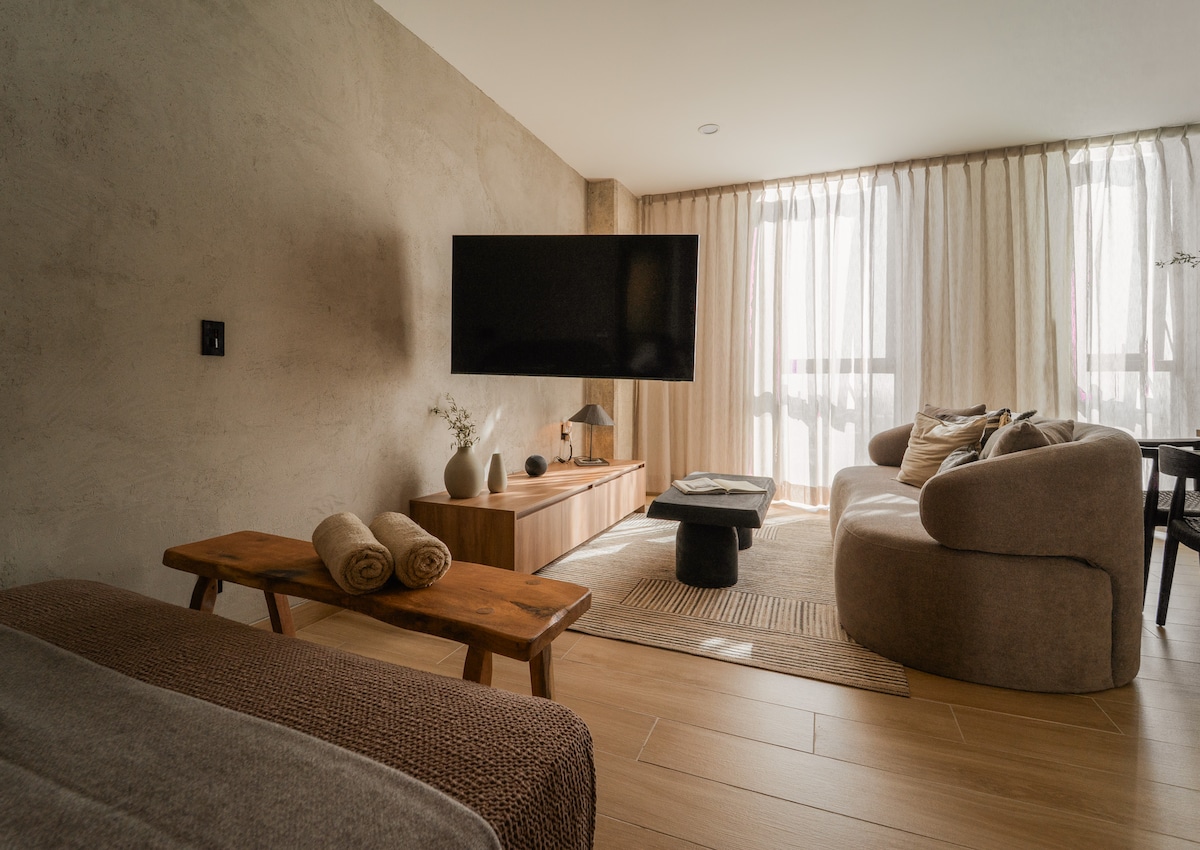 ग्वाडालाजारामधील लक्झरी अपार्टमेंट, डिझायनर फर्नांडा निसिनो यांनी सजवलेले आणि हाताने अपहोल्स्ट्रीद्वारे मोजण्यासाठी बनवलेल्या फर्निचरसह. फायनान्शियल झोन, कोलोमोस फॉरेस्ट, पुंटो साओ पाउलो आणि अँडरेसपासून फक्त 10 मिनिटांच्या अंतरावर असलेल्या प्रोव्हिडेन्सियामधील सर्वात खास आणि नवीन इमारतींपैकी एकामध्ये रहा. तुम्हाला एक अद्भुत वास्तव्य बनवणाऱ्या सर्व सुविधांसह अपवादात्मकपणे आरामदायक जागा. यात 24/7 सिक्युरिटी आणि स्वतःचे पार्किंग आहे.