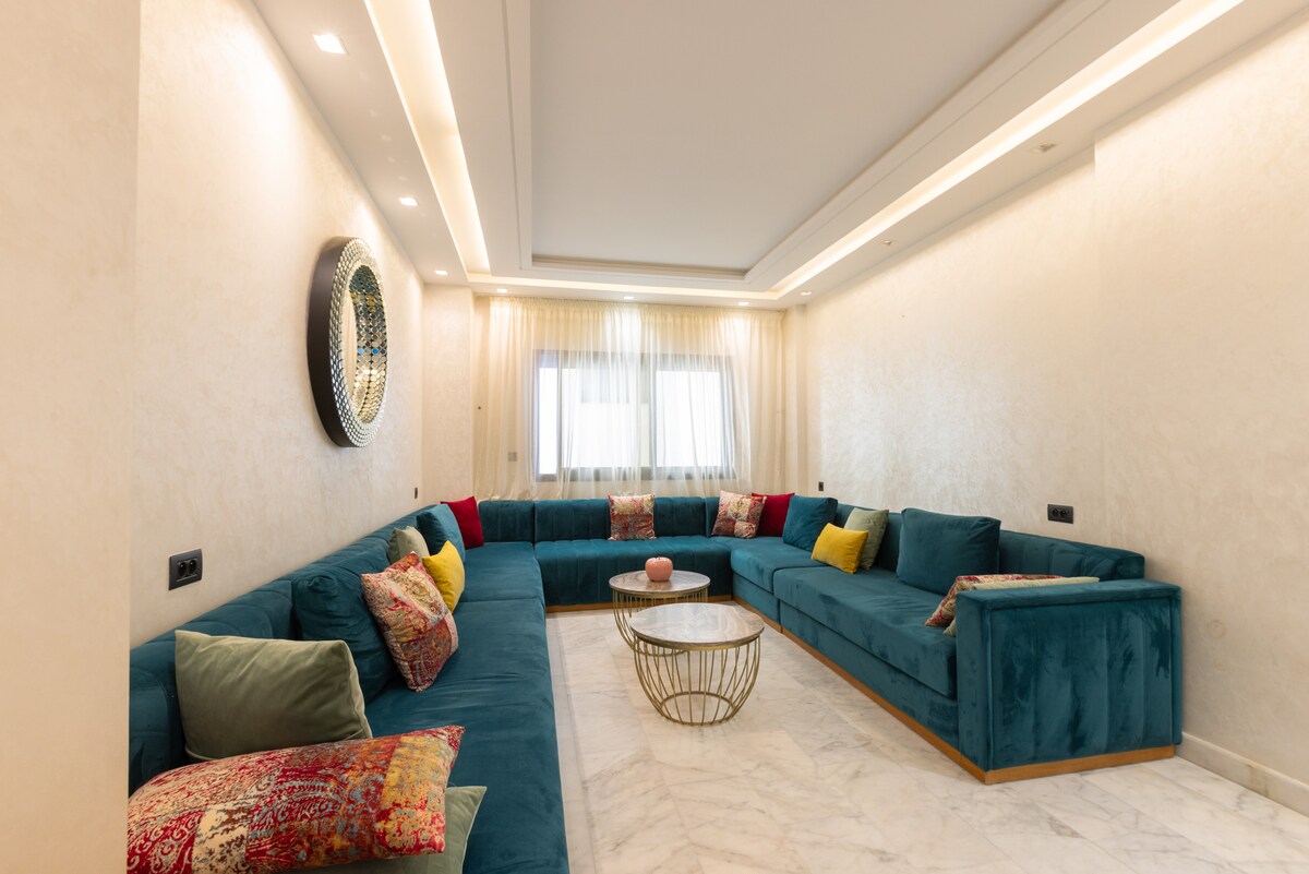 Pour vous, nous avons créé ce MAGNIFIQUE appartement 1 chambres AU BORD DE PLAGE. Profitez d'un LUXUEUX séjour dans notre appartement VUE MER raffiné et confortable idéalement situé à TANGER PLAYA, devant la plage AL GHANDOURI et les réputés cafés RRICE et LA VUE. Sa décoration a été pensée pour que vous y soyez COMME A LA MAISON, mais en mieux ! Le tout dans une résidence FAMILIALE avec PISCINE, PARKING et JARDIN fleuri. La résidence est SECURISEE 24h/7.