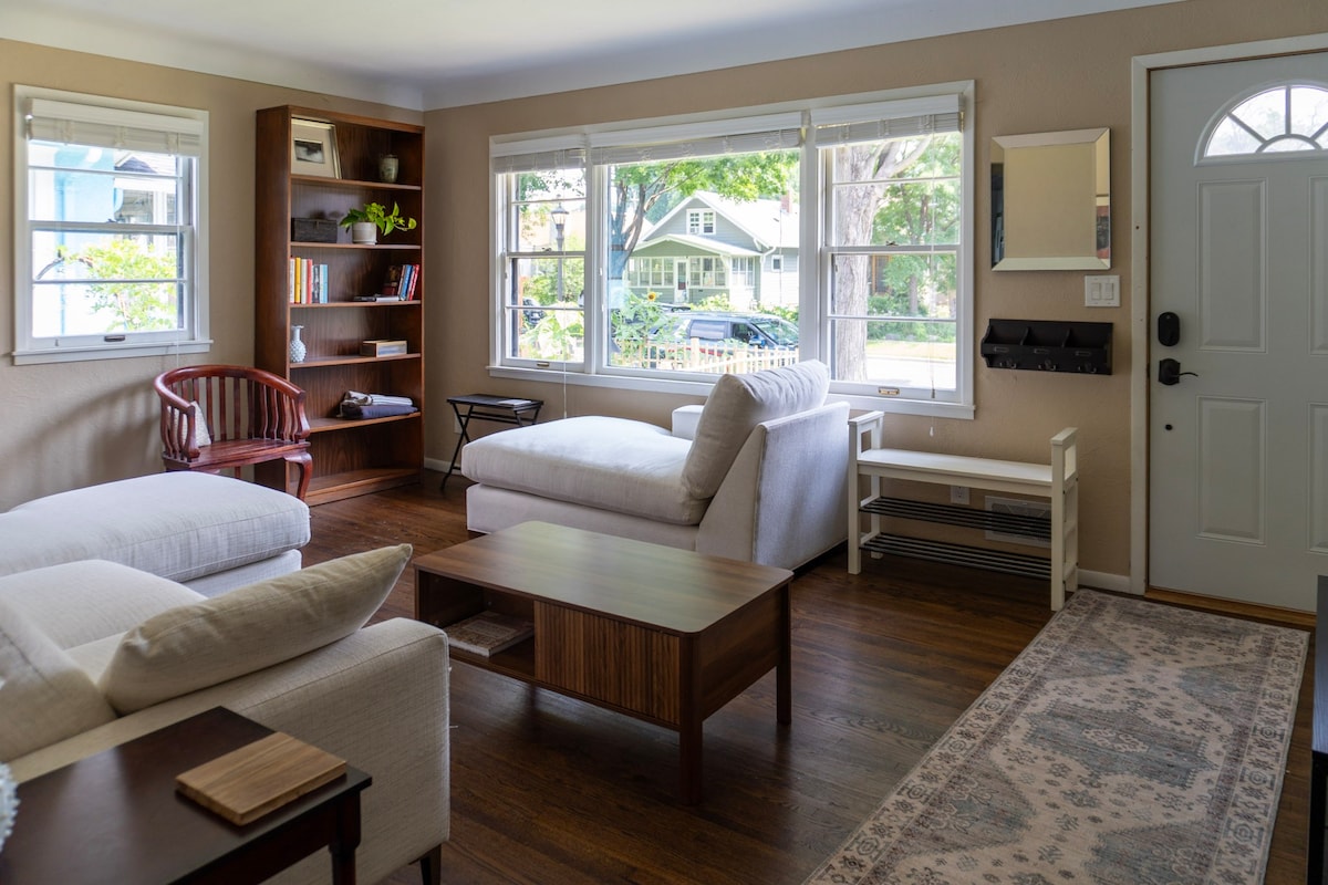Urban Zen retreat; unique mid-century modern meets Japan in a great neighborhood full of architectural gems. Updated 1950's architect-built passive-solar artist retreat home, surrounded by trees and Japanese Gardens. Casual comfort far from sterile, filled with art. Complete tranquility 10 min from downtown Mpls and very close to both U of MN campus. Lively, friendly neighborhood in walking distance to grocery store, gift shops, wine shop, yoga studio, coffee shops and great restaurants.