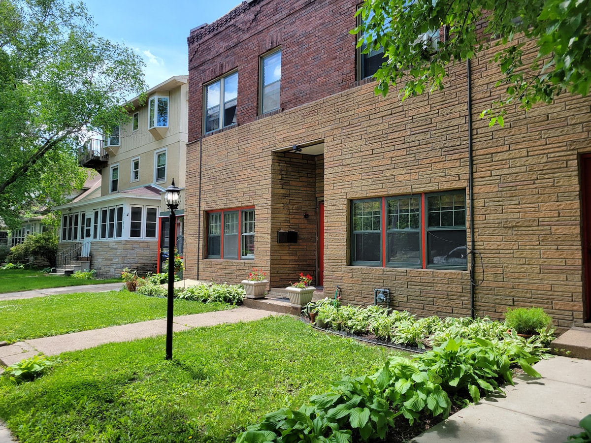 Spacious upper level duplex unit in the historic Prospect Park neighborhood of Minneapolis. Walking distance to the light rail, with transit access to downtown St. Paul, Minneapolis, U of M, sports stadiums, Mall of America, and MSP airport. Fully furnished, updated kitchen, 2 bedrooms, bath, and large living and dining rooms. Grocery store, parks, brewpub, and food hall in the neighborhood. This apartment is not childproofed and is not recommended for guests with infants or young children.