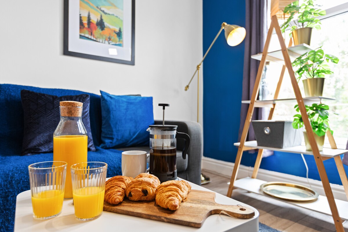 शहराच्या विश्रांती, कामाच्या ट्रिप्स किंवा शांत गेटअवेजसाठी योग्य असलेल्या तुमच्या उबदार आणि स्टाईलिश वन - बेड स्टुडिओमध्ये तुमचे स्वागत आहे. जागेमध्ये आरामदायक डबल बेड, एक लहान सोफा बेड आणि आरामदायक वास्तव्यासाठी स्वच्छ, आधुनिक लेआउटचा समावेश आहे. फ्रीज, वॉशिंग मशीन, मायक्रोवेव्ह आणि केटल (टीप: ओव्हन नाही) असलेल्या खाजगी किचनचा आनंद घ्या. एक दिवस संपल्यानंतर फ्लॅट - स्क्रीन टीव्हीवर चित्रपटासह आराम करा. सिटी सेंटरला जाण्यासाठी 🚗 फक्त 10 मिनिटांचा ड्राईव्ह तुम्हाला आवश्यक असलेल्या सर्व गोष्टींचा सहज ॲक्सेस आहे!