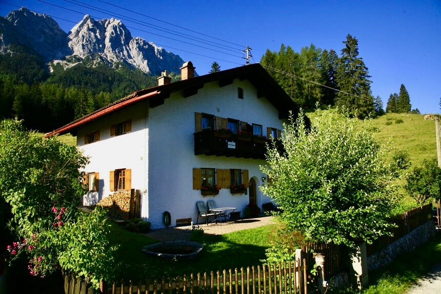 गार्मिशच्या मध्यभागी आणि हौसबर्ग एरियाच्या मध्यभागी असलेल्या शांत रस्त्यावर असलेल्या घरात पहिल्या मजल्यावरील उबदार एक बेडरूमचे अपार्टमेंट (तळमजल्यापासून एक वर). फ्लॅटमध्ये उत्तर आणि दक्षिण बाल्कनी आहे. गेस्ट्स एका भूमिगत पार्किंगची जागा वापरू शकतात. आमच्याद्वारे GaPa - पर्यटक कार्यालयासाठी वैयक्तिक माहिती (नाव, पत्ता, जन्मतारीख इ.) द्यावी लागेल. पाळीव प्राण्यांचे स्वागत आहे, परंतु कुत्रे भुंकत असल्यास त्यांना फ्लॅटमध्ये एकटे राहण्याची परवानगी नाही.