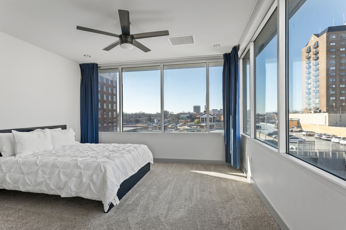 मेन स्ट्रीटवरील 11 फूट छतावरील बेडरूम आणि अनोखा मजला असलेल्या डाउनटाउन लेक्सिंग्टनचे अपवादात्मक दृश्ये ऑफर करत आहे! चौथ्या मजल्यावर राहणाऱ्या या काँडो - हॉटेलमध्ये दोन बेडरूम्स आहेत, ज्यात क्वीनच्या आकाराचे बेड्स, दोन स्लीपर सोफा असलेली लिव्हिंग रूम, पूर्ण किचन वाई/ क्वार्ट्ज काउंटरटॉप्स आणि खाजगी वॉशर/ड्रायर आहेत. गेस्ट्स रुप अरेना, कीनेलँड, कार्सनसारख्या स्थानिक रेस्टॉरंट्स, कॉफी शॉप्स, रिटेल आणि इतर बऱ्याच ठिकाणी देखील जाऊ शकतात!