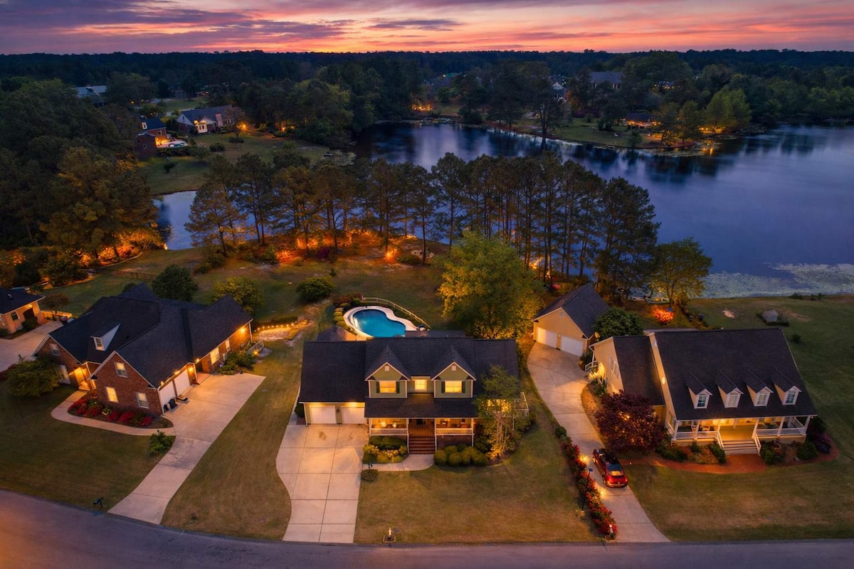 नवीन आणि अप्रतिम लोकेशन! आमचे घर 12 पर्यंत झोपण्यासाठी 4 बेडरूम्स आणि 3 पूर्ण बाथ्स w/जागा देते! पूल, ग्रिल, योग आणि व्यायामाचे क्षेत्र आणि प्रशस्त बॅक पोर्चसह अंतिम गेटअवे अनुभवाचा आनंद घ्या! यार्डमध्ये गेम्स आणि डॉग पेनसाठी एक मोठी जागा देखील आहे. हे लोकेशन रेस्टॉरंट्स, फूड ट्रक आणि निसर्गरम्य ब्रॅन्सन तलावापर्यंत एका मैलापेक्षा कमी अंतरावर आहे! घर फोर्ट लिबर्टीपासून सुमारे 10 मिनिटांच्या अंतरावर आहे आणि 295 पासून काही मिनिटांच्या अंतरावर आहे. आम्ही तुमच्या विनंतीनुसार वैयक्तिक शेफचा अनुभव देखील देऊ शकतो!