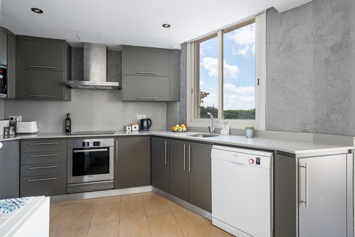 तीन मजल्यांवर 600 चौरस मीटरचा अत्यंत सुंदर मिनिमलिस्ट लक्झरी व्हिला. पूल व्ह्यूज, प्रोजेक्टर, सॅटेलाईट टीव्ही, व्हिडिओ गेम्स, डिस्को आणि जिमसह मल्टीपर्पज रूमचे वैशिष्ट्ये. नोव्हेंबर ते एप्रिल या कालावधीत संरक्षित असलेला व्हर्लपूल आणि मल्टीकलर्ड लाइटिंगसह खाजगी स्विमिंग पूल (9 x 5 मीटर). अतिरिक्त शुल्काच्या विनंतीनुसार पूल हीटिंग उपलब्ध आहे. अधिक सुरक्षेसाठी पूल आणि टेरेसमध्ये नवीन अँटी-स्लिप टाइल्स आहेत. बार्बेक्यू, गार्डन, गेम्स रूम, 15 बाइक्स, एअर कंडिशनिंग, होम ऑटोमेशन आणि इलेक्ट्रिक कार चार्जर.