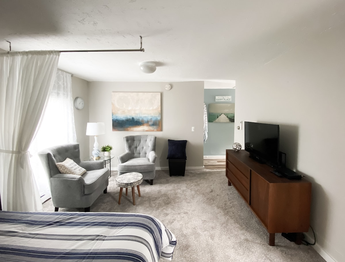 स्प्रिंग लेक स्टुडिओ रेंटल ही एक आरामदायक स्वागतार्ह जागा आहे जी तुमच्या लेकशोर वास्तव्याला आराम आणि सुविधा देण्यासाठी डिझाईन केलेली आहे! “स्टुडिओ” हे एक अपार्टमेंट आहे ज्यात बेडरूम, लिव्हिंग रूम आणि खाजगी बाथरूम आणि प्रवेशद्वारासह किचन म्हणून काम करणारी एक मोठी रूम आहे. जोडपे, सोलो प्रवासी किंवा लहान कुटुंबांसाठी उत्तम. ट्रंडल बेड्समुळे चार गेस्ट्सपर्यंत झोपणे सोपे होते. महामार्ग, बाईक ट्रेल आणि शहराच्या सर्व सुविधांचा सहज ॲक्सेस. ग्रँड हेवन बीच 4 मैलांपेक्षा कमी अंतरावर आहे.