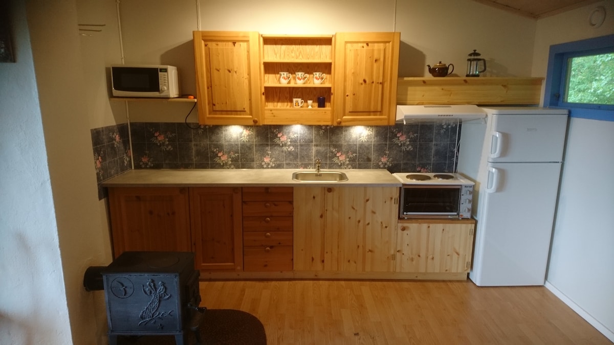 ही अशी जागा आहे जिथे तुम्ही काम आणि तणावापासून डिस्कनेक्ट करू शकता. येथे तुम्ही जंगलात एकटेच आहात आणि झोपण्याची संधी देखील आहे. चार लोक झोपू शकतात, परंतु 2 लोकांसाठी ते सर्वात योग्य आहे. कोरड्या आणि छान लाकडाचा विनामूल्य ॲक्सेस. पार्किंगपासून 200 मीटर. शिकार आणि मासेमारीच्या संधी आहेत. - नळामध्ये उन्हाळ्यातील पाणी आणि स्लीपिंग केबिनसह किचनच्या बाहेर - माझ्याकडे तिथे अमर्यादित पाणी नसल्यामुळे आऊटडोअर शॉवर (समर वॉटर) देखील लहान शॉवर लांबीसाठी बसवले आहे. - 50gb सह मोबाईल वायफाय जेणेकरून अमर्यादित वापर होणार नाही