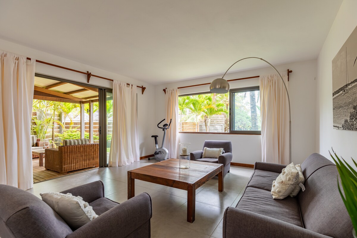मॉरिशसच्या पूर्व किनारपट्टीवरील सुंदर बेले मॅरेमधील वाळूच्या खाजगी भागात स्थित एक उबदार आणि आमंत्रित बीचफ्रंट व्हिला मोन पेटिट कॉईन डी पॅराडिसमध्ये 🏝️तुमचे स्वागत आहे. येथे असलेली प्रत्येक गोष्ट तुम्हाला घरी असल्यासारखे वाटण्यासाठी डिझाईन केली गेली आहे, वैयक्तिकृत लक्ष — घरी बनवलेले जेवण आणि दैनंदिन हाऊसकीपिंगच्या अतिरिक्त आरामदायीतेसह. शांत आणि जिव्हाळ्याच्या वातावरणात बेटांच्या जीवनाच्या आरामदायी लयीचा आनंद घ्या.