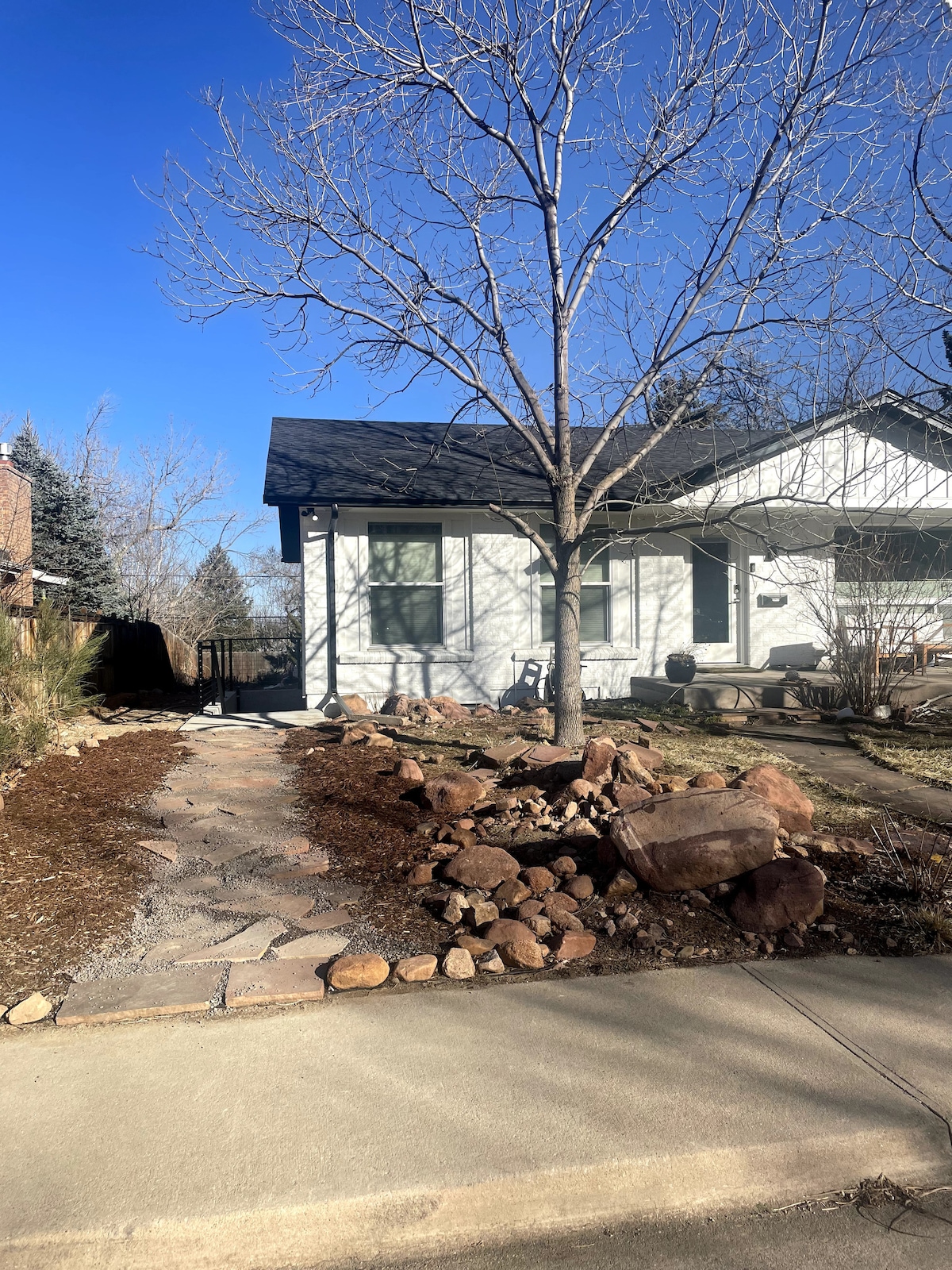 जागेला स्वतःचे बाथरूम आहे, खाद्यपदार्थांची तयारी, बेडरूम आणि लिव्हिंग रूमचा ॲक्सेस आहे. हे सुमारे 900 चौरस फूट आणि तळघर पातळी आहे. क्वीन बेड बेडरूममध्ये आहे, (एअर मॅट्रेस उपलब्ध आहे.) हे घर पर्ल स्ट्रीटपासून सुमारे 1 मैल, किराणा सामान आणि कॉफीपर्यंत .8 मैल आणि माऊंटपासून रस्त्याच्या अगदी खाली आहे. हायकिंगसाठी सॅनिटास. तसेच बस स्टॉपपासून अर्धा ब्लॉक आणि ई - बाईक डॉक सुमारे 3 ब्लॉक दूर आहे! तसेच पिकल बॉल कोर्ट्स असलेले नॉर्थ बोल्डर रिक सेंटर आहे.